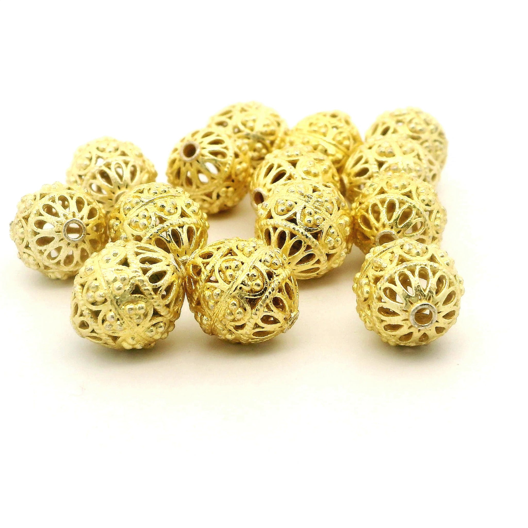 1 Strand of Decorated Bead | Fancy Gold Finish Beads | Anti Tarnish Beads | 8 Inch Long Bead Strand | Size: 14mmX12mm