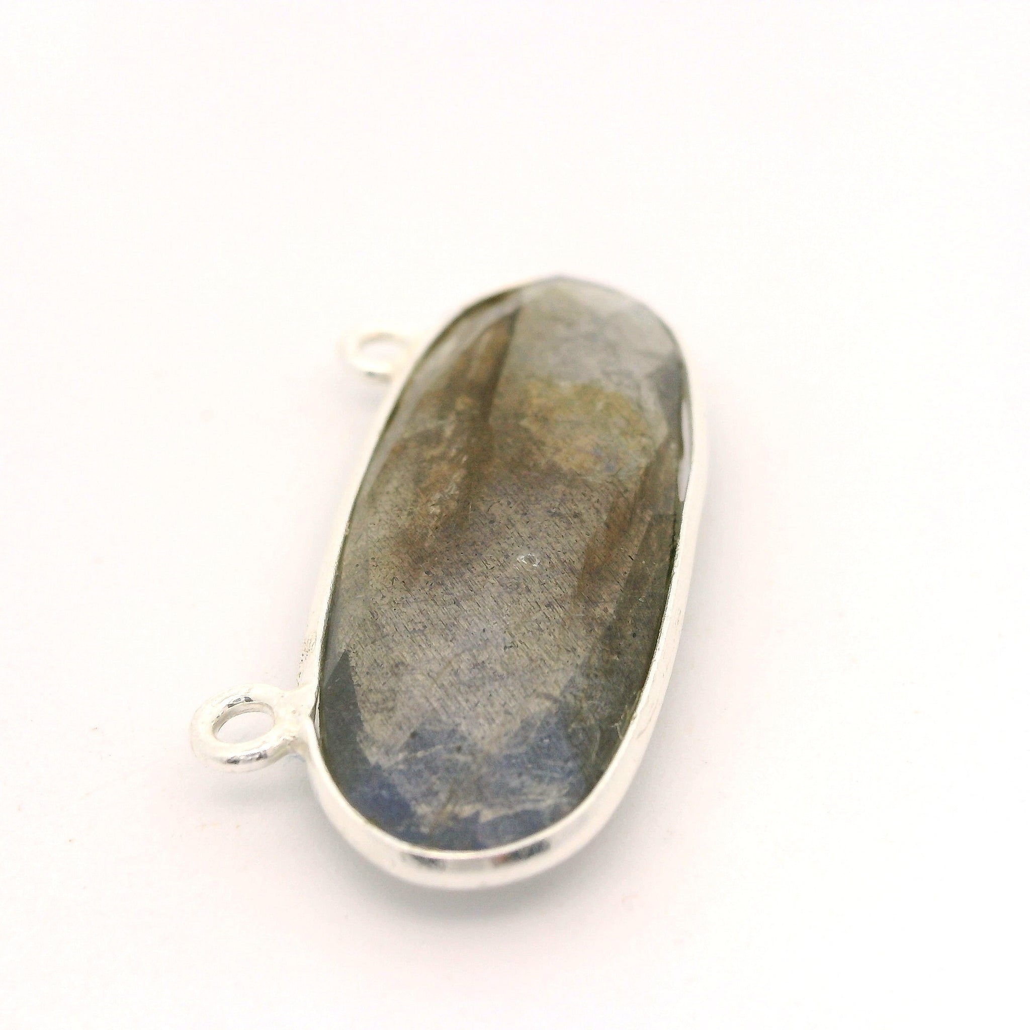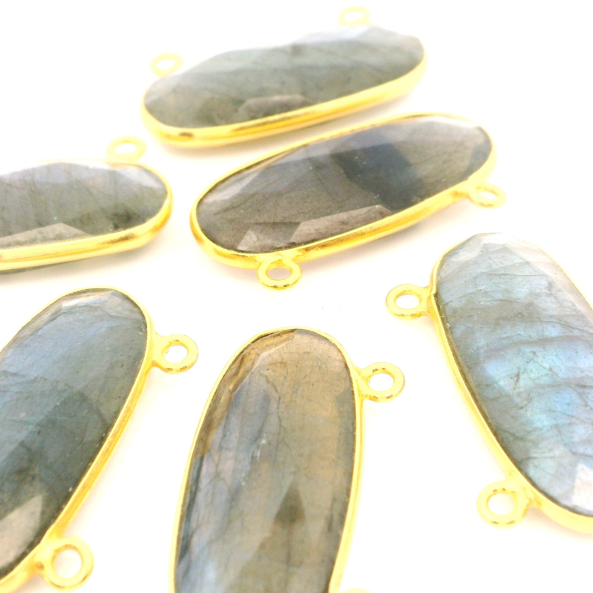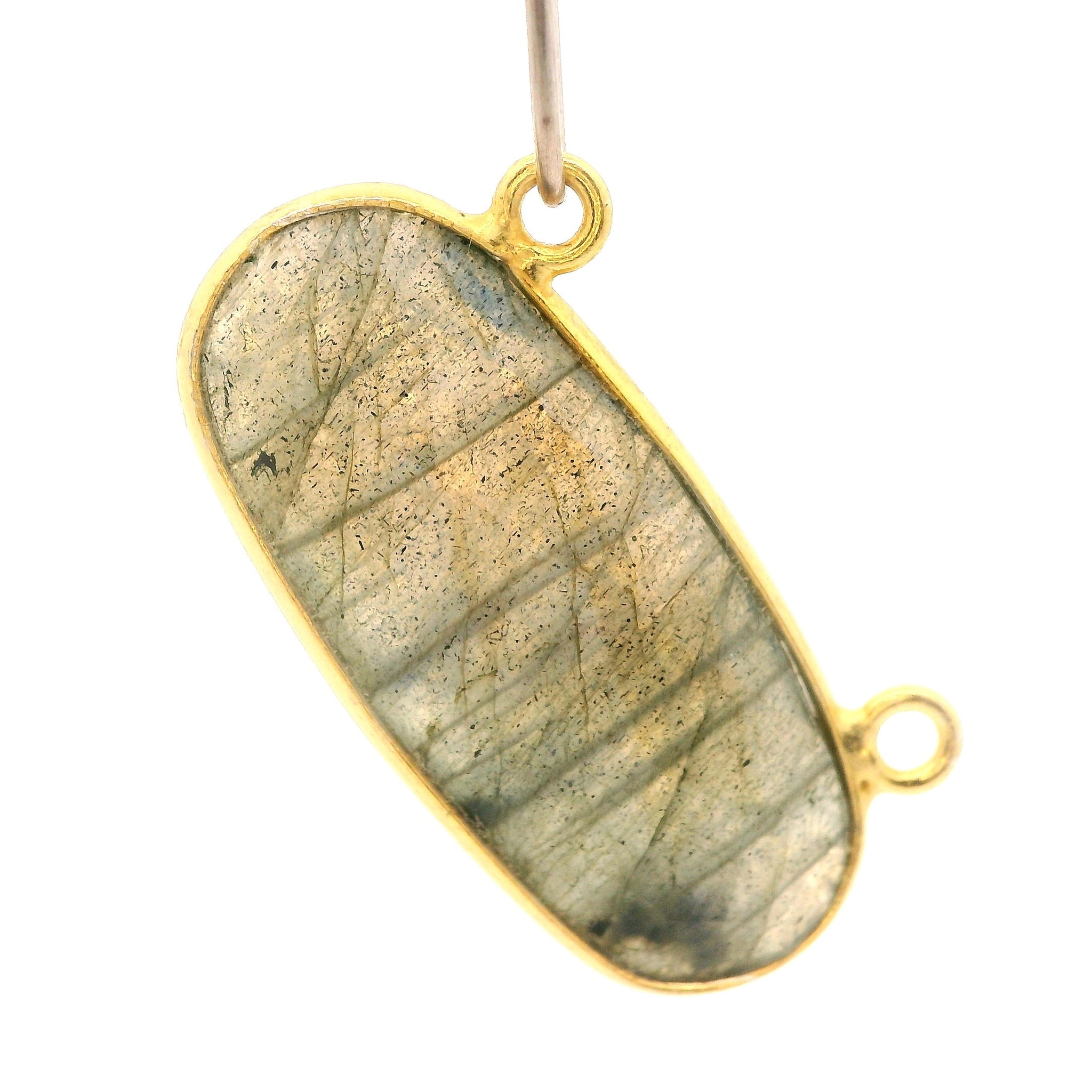 Oval Shape Blue Labradorite Connector Bezel – 10x24mm, 2 Loops, 925 Sterling Silver and Gold Plated Silver, Jewelry Link, 1 Pcs