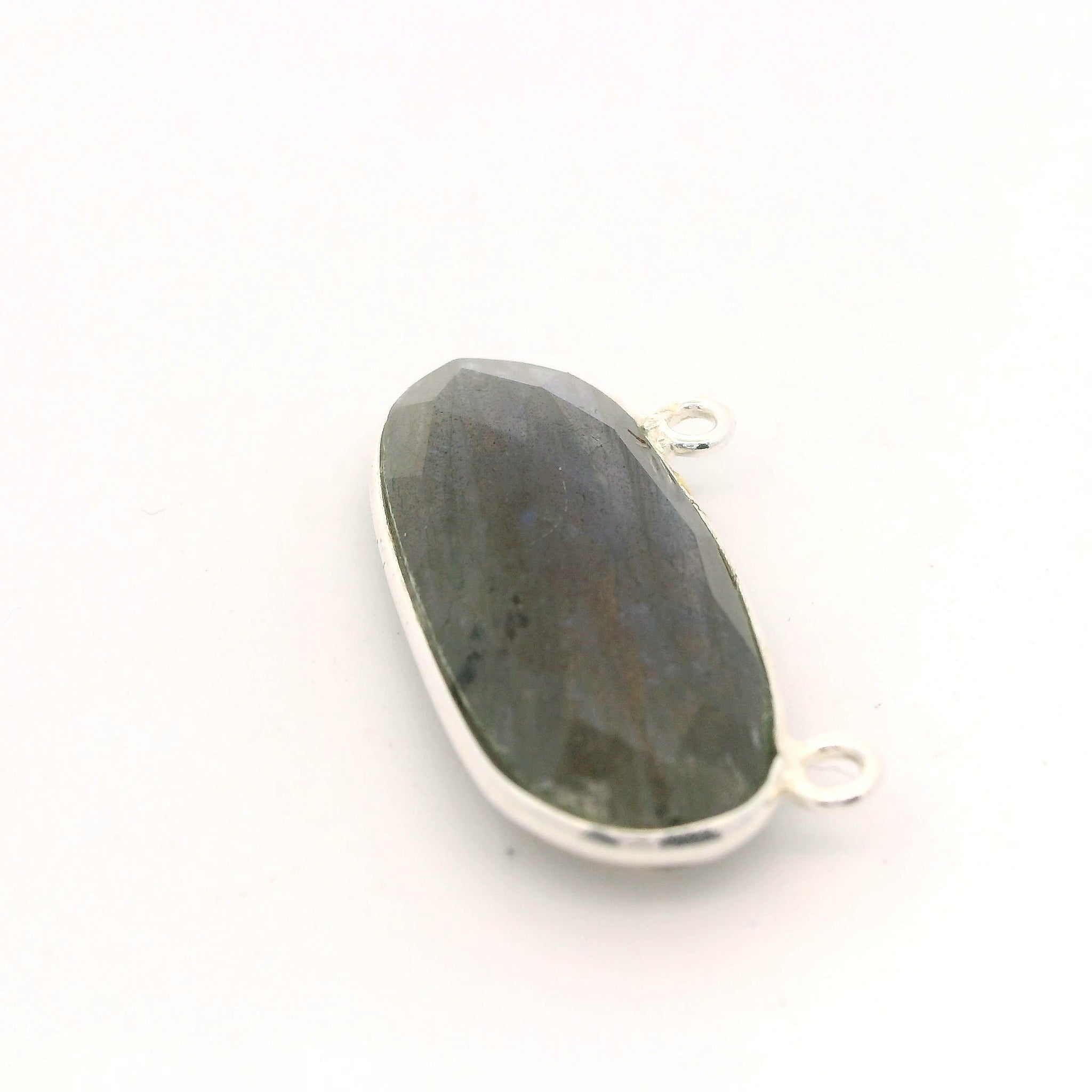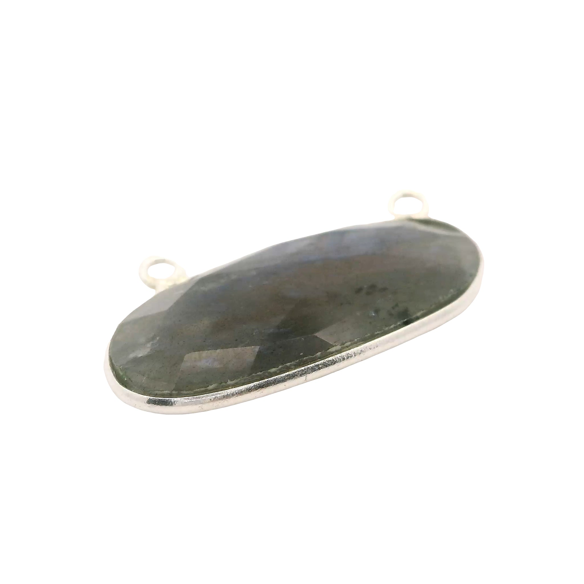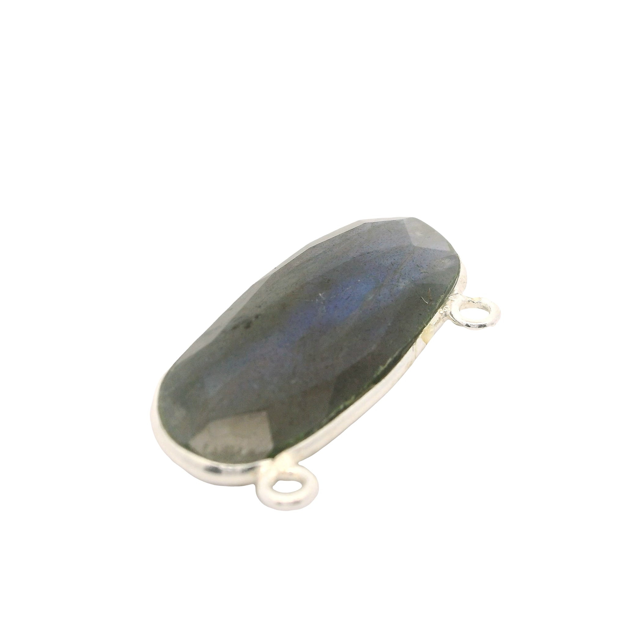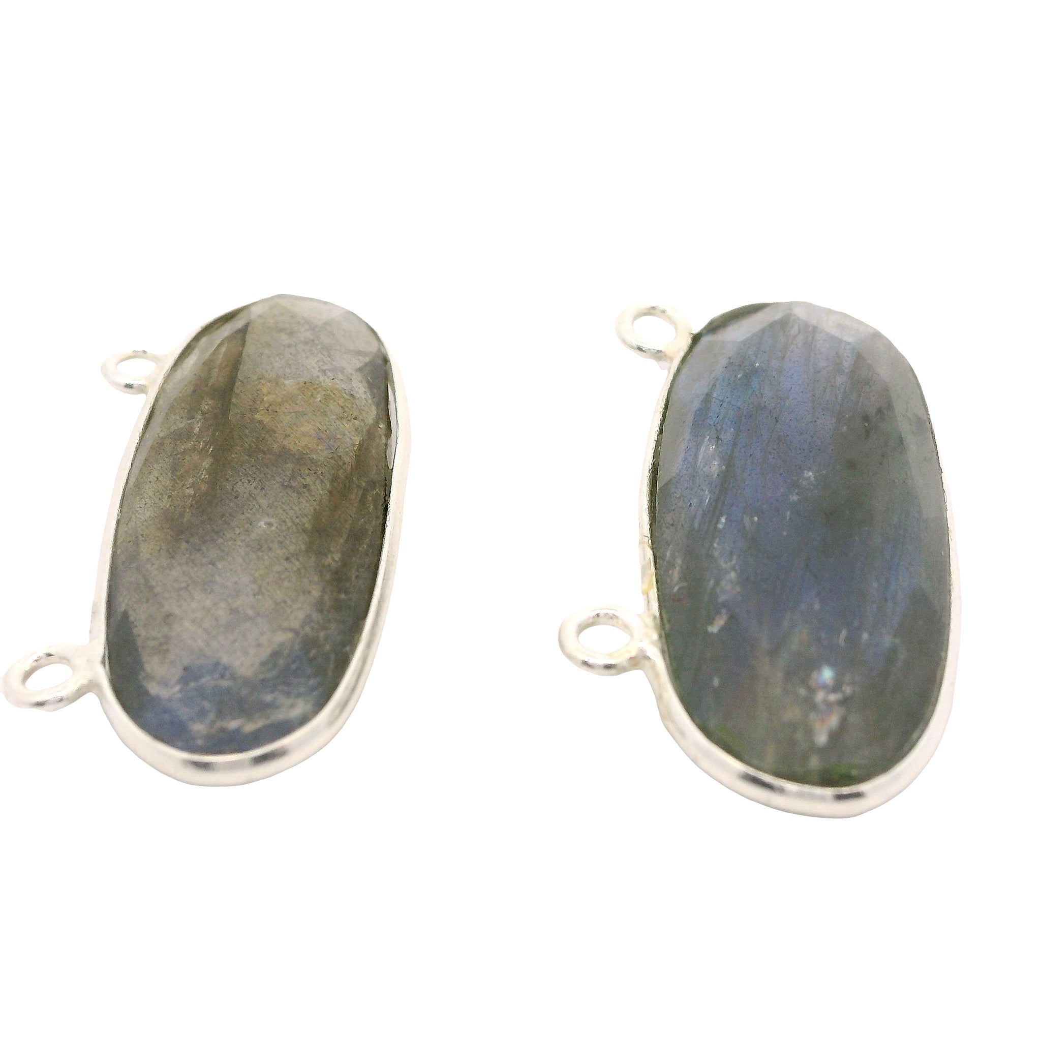 Oval Shape Blue Labradorite Connector Bezel – 10x24mm, 2 Loops, 925 Sterling Silver and Gold Plated Silver, Jewelry Link, 1 Pcs