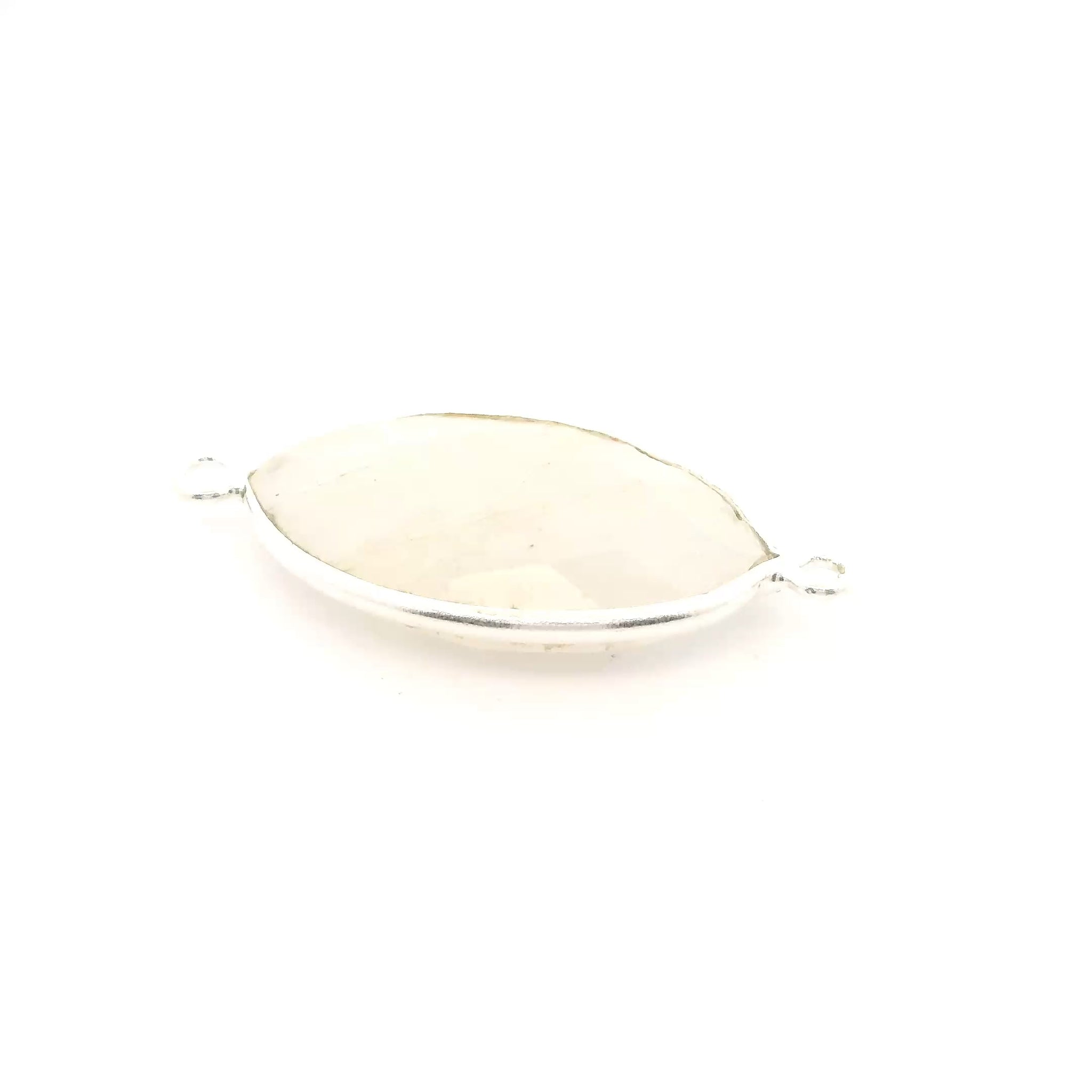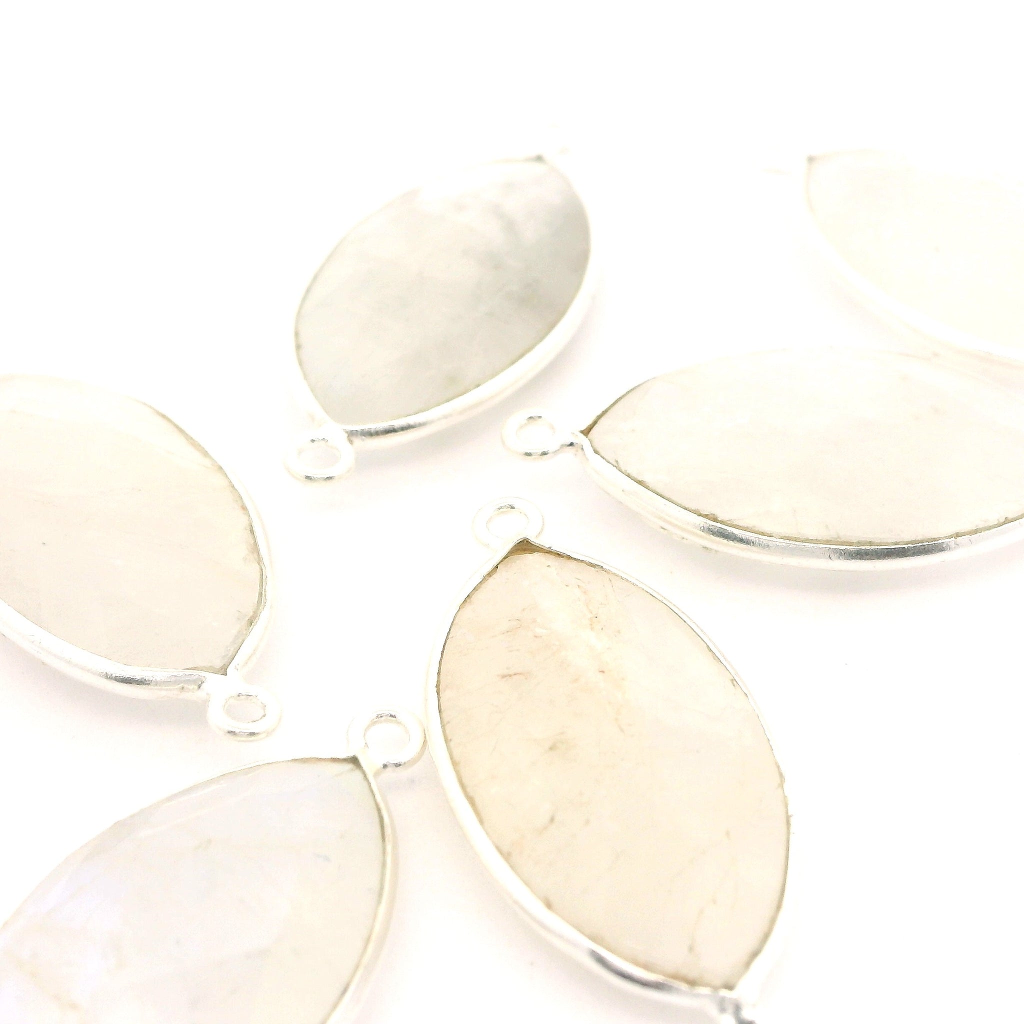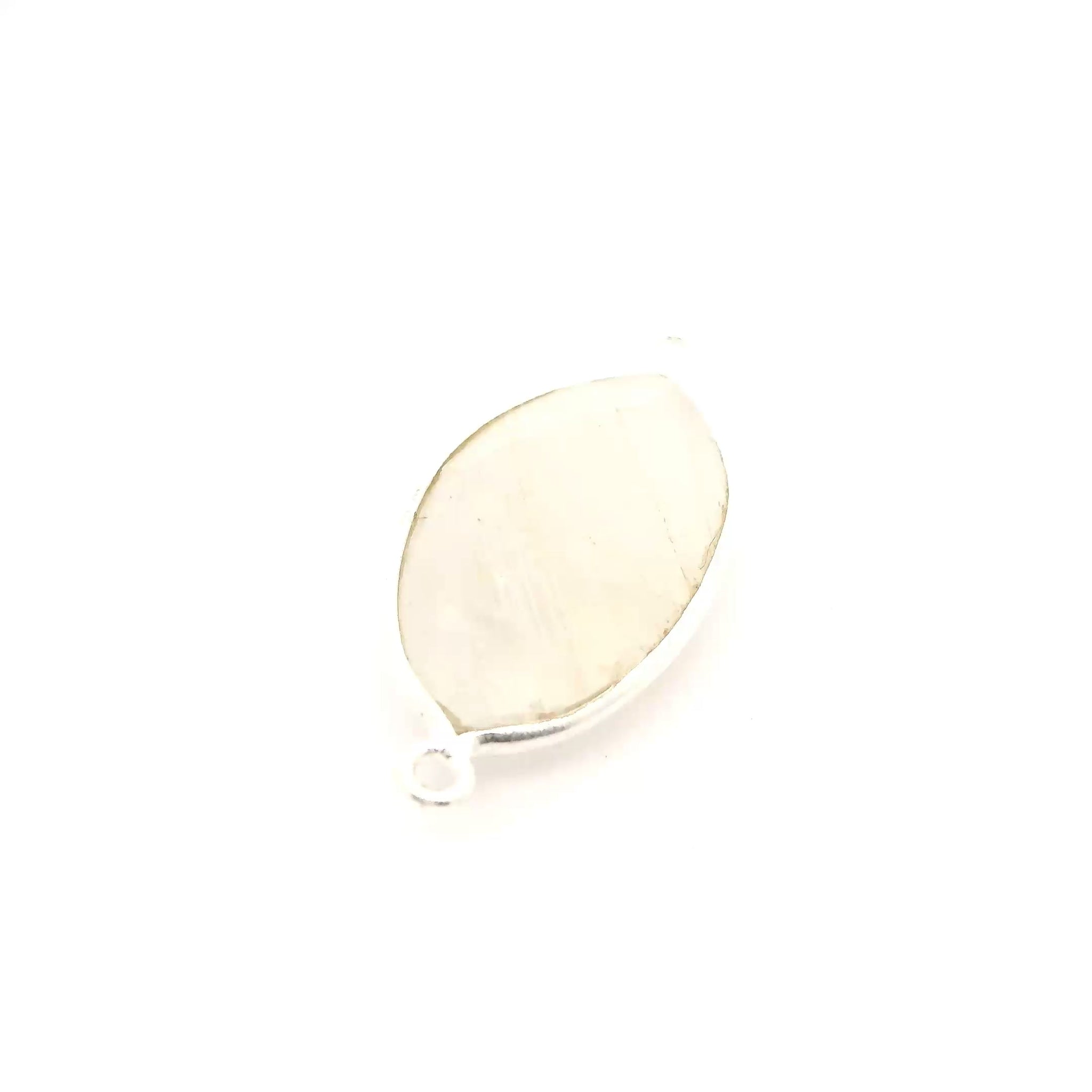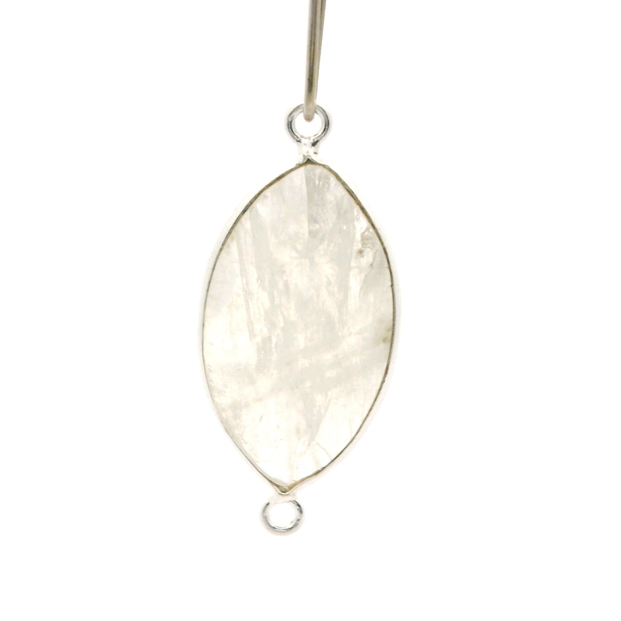 Add a sleek, elongated elegance to your jewelry with this Rainbow Moonstone Marquise Pendant / Connector, sized 11x22mm. The marquise cut enhances the natural rainbow shimmer of moonstone, bezel-set for a polished and secure finish.