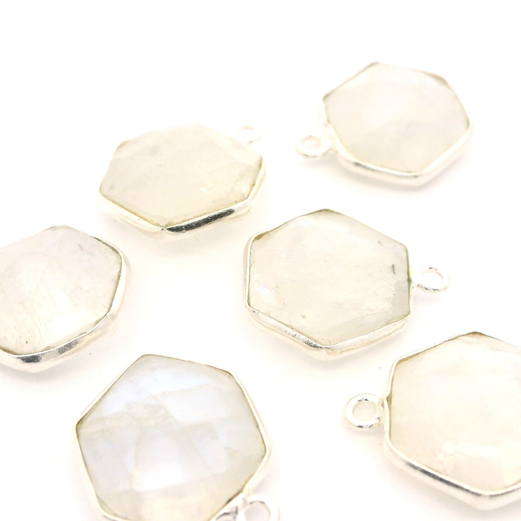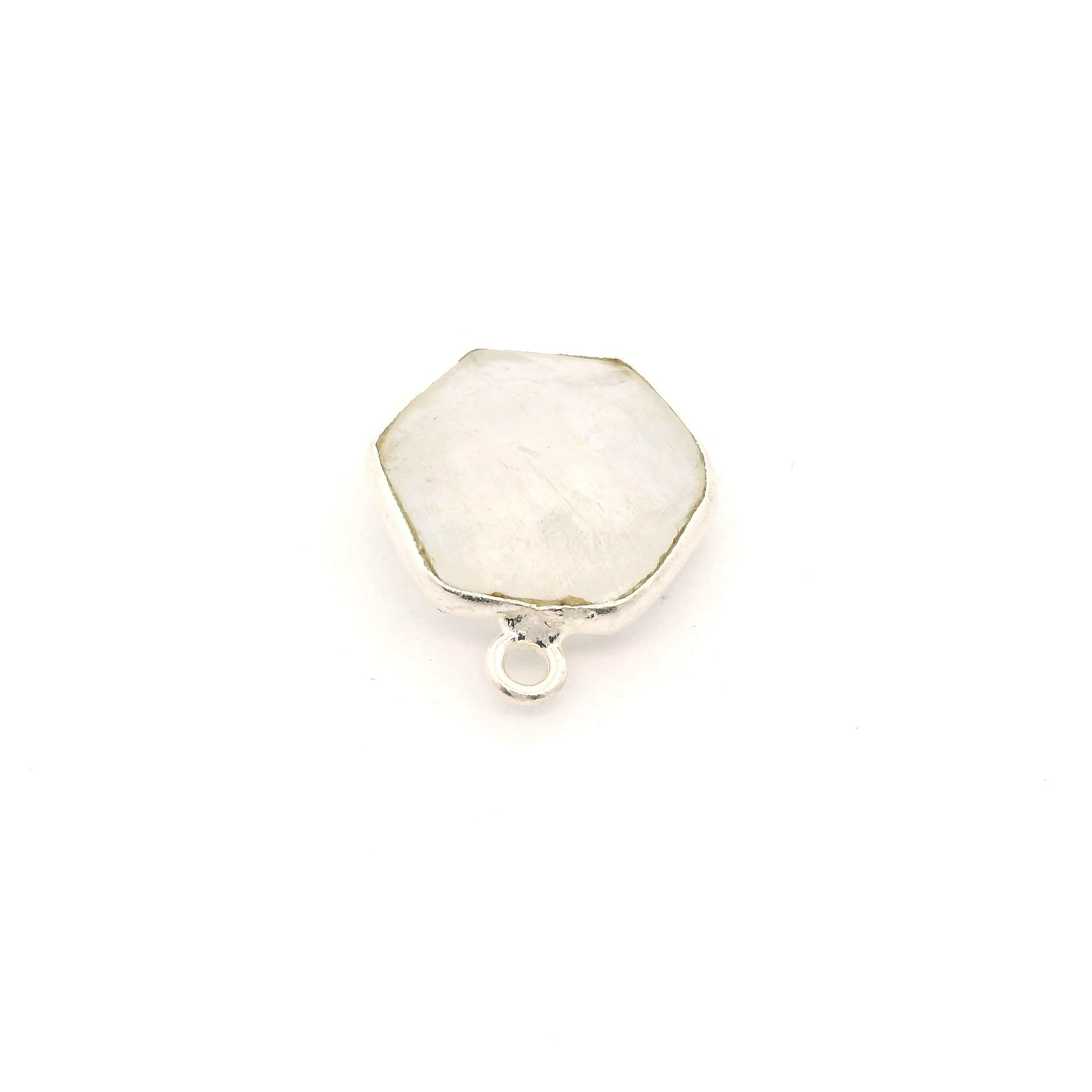 Rainbow Moonstone Hexagon Pendant – 12mm, Center Loop, 925 Sterling Silver & Gold Plated Silver, 1 Pc