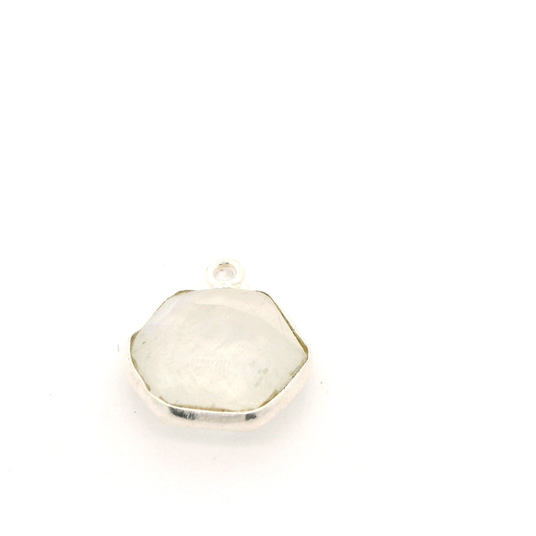 Add geometric elegance to your jewelry with this Rainbow Moonstone Hexagon Pendant, sized 12mm. The hexagon cut highlights the rainbow shimmer of moonstone, bezel-set for a polished and secure finish.