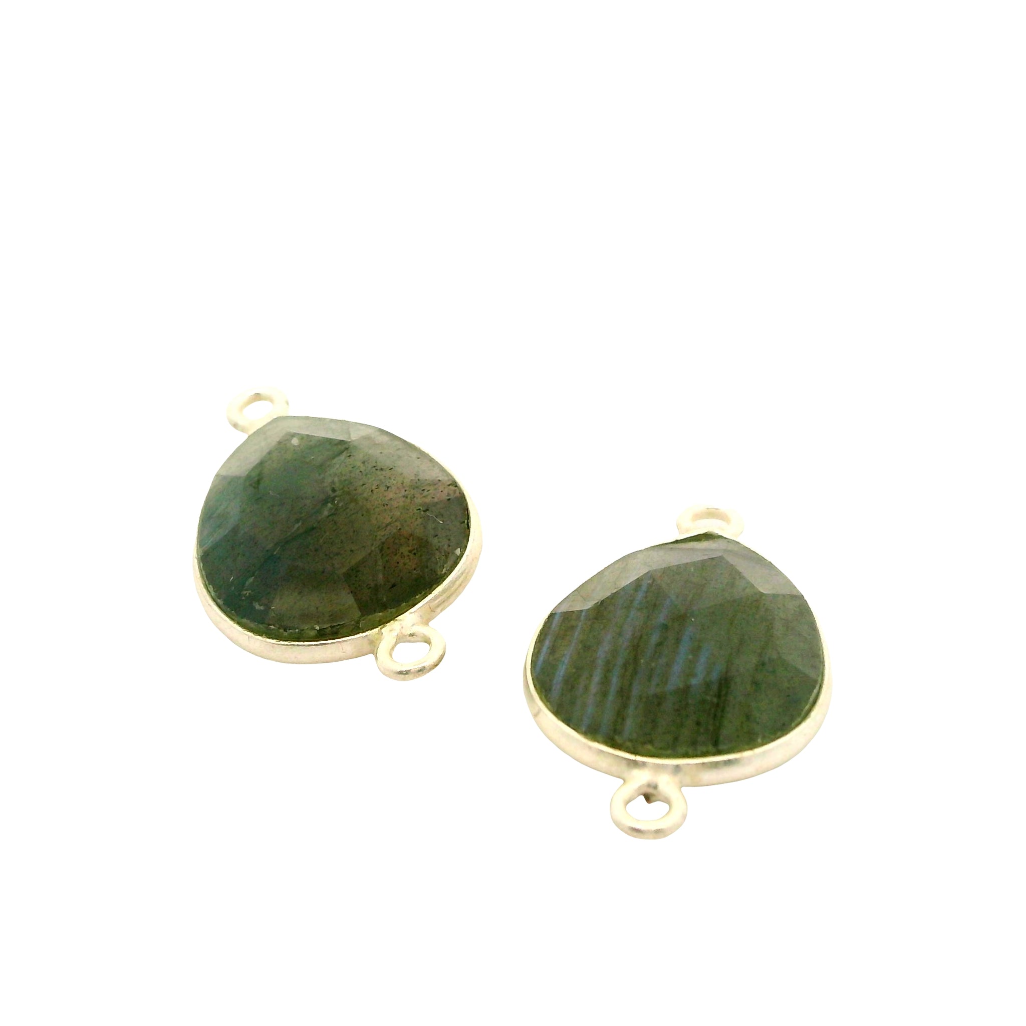 Pear Shape Labradorite Connector Bezel – 12x15mm, 925 Sterling Silver, 2 Loops, Handcrafted Gemstone Link, Gold Plated Option