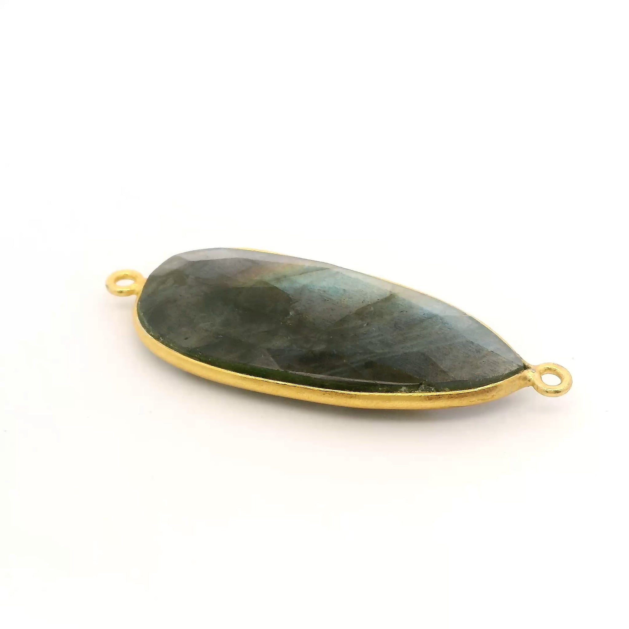 Multi Fire Labradorite Pear Connector – 14x32mm, 2 Loops, Bezel Set in 925 Sterling Silver & Gold Plated Silver, 1 Pc