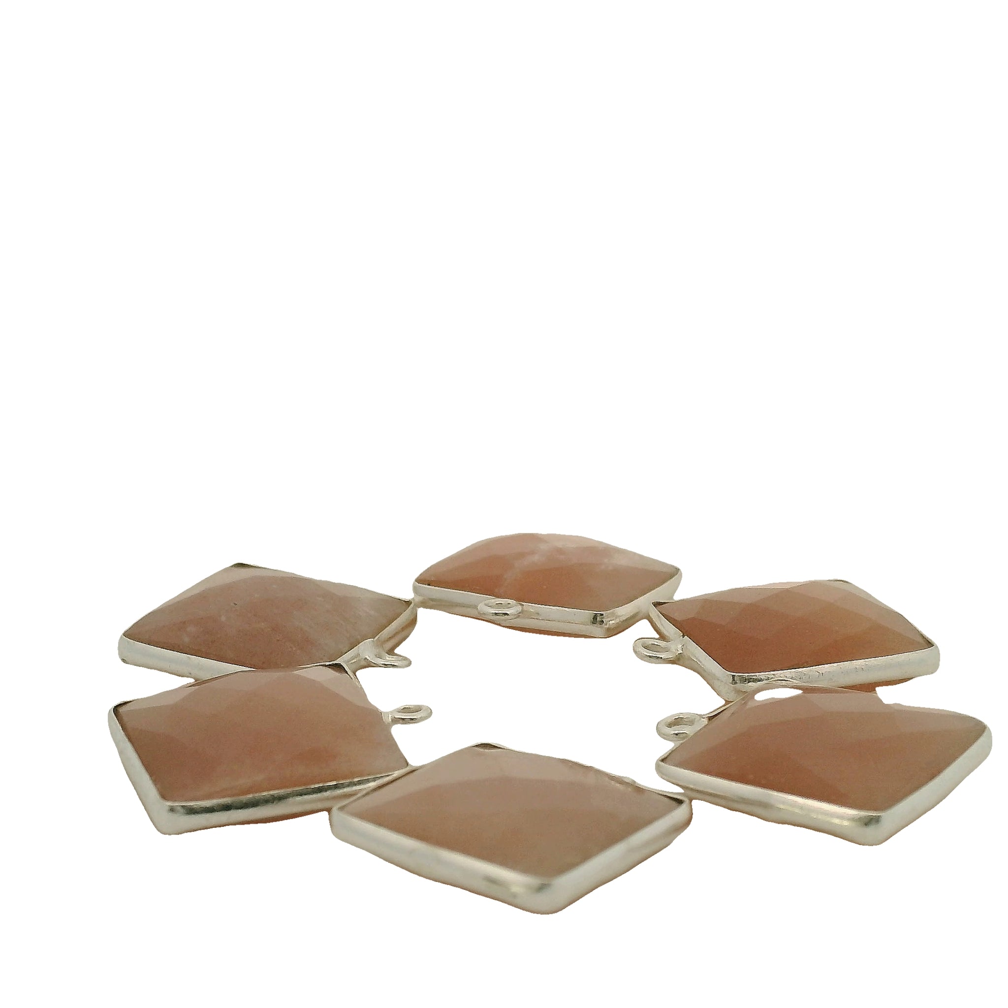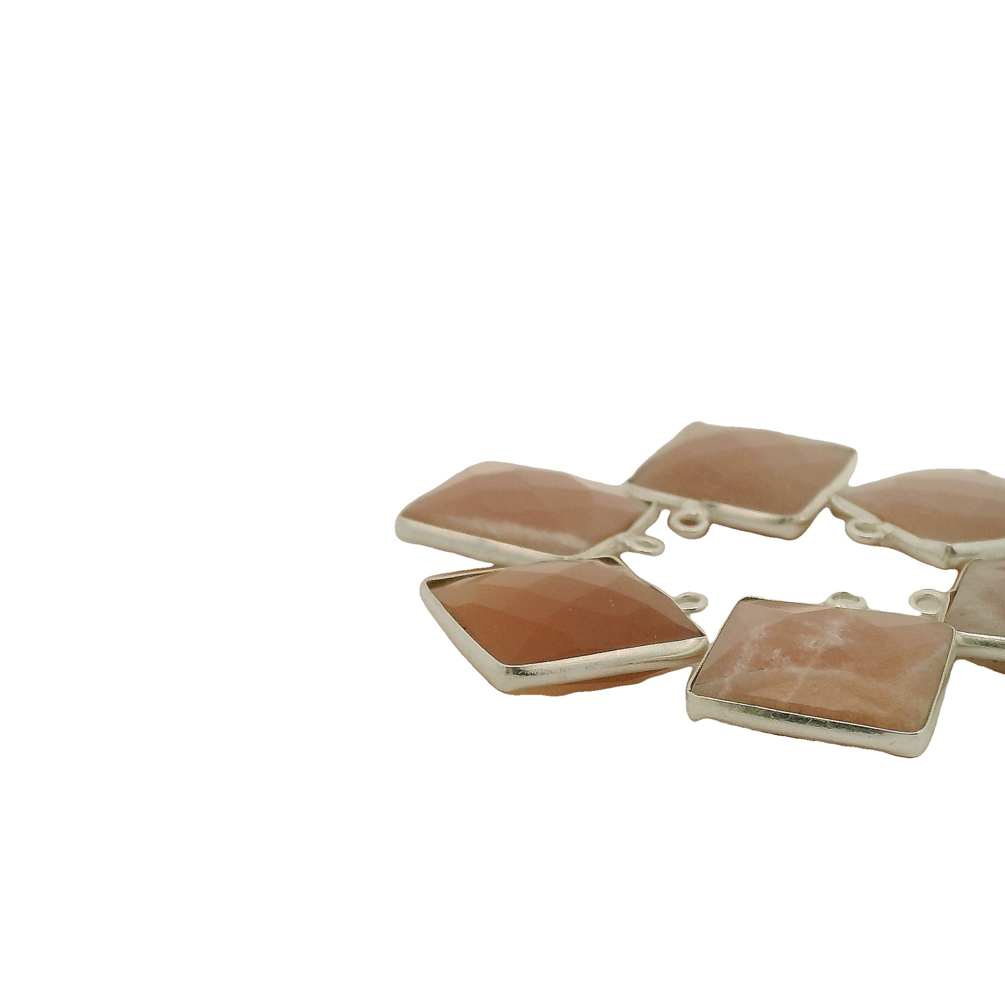This listing is for one piece of Square Peach Moonstone Bezel One Loop.