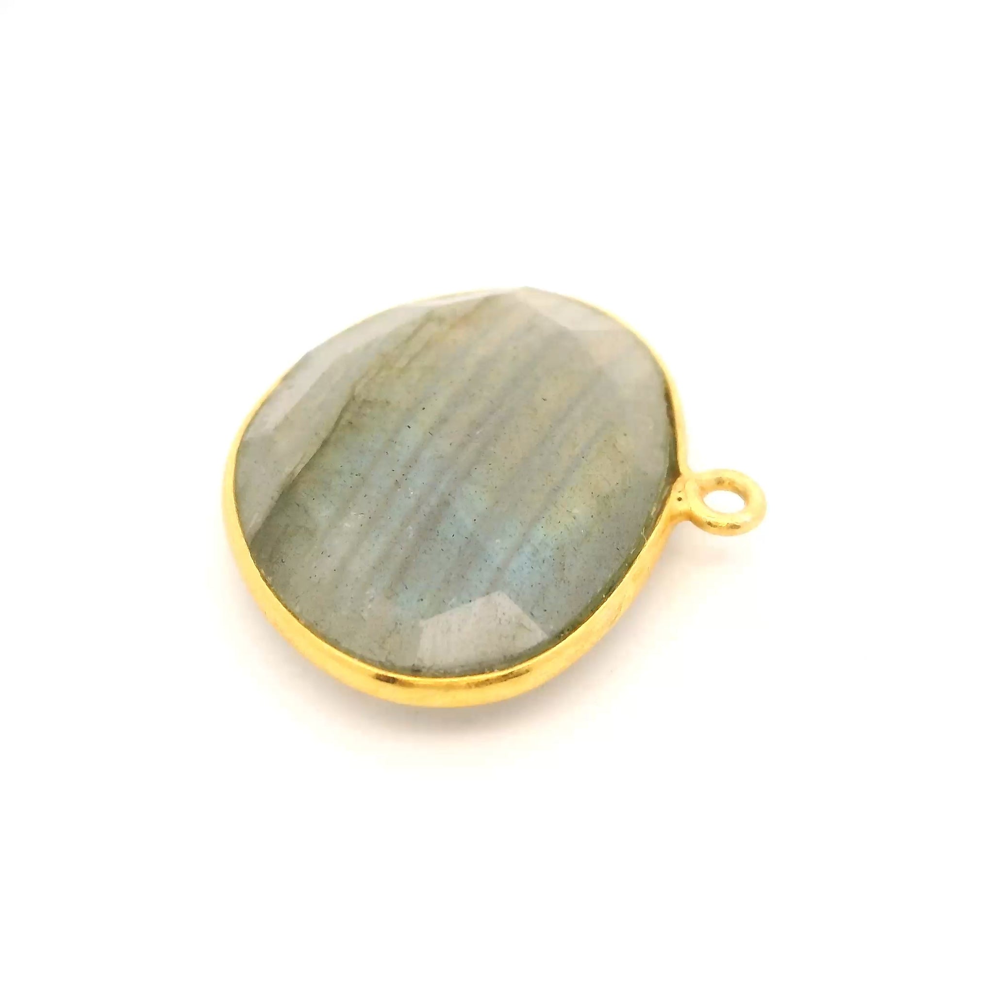 Multi Fire Labradorite Half Oval Pendant – 15x20mm, 1 Loop, Bezel Set in 925 Sterling Silver & Gold Plated Silver, 1 Pc