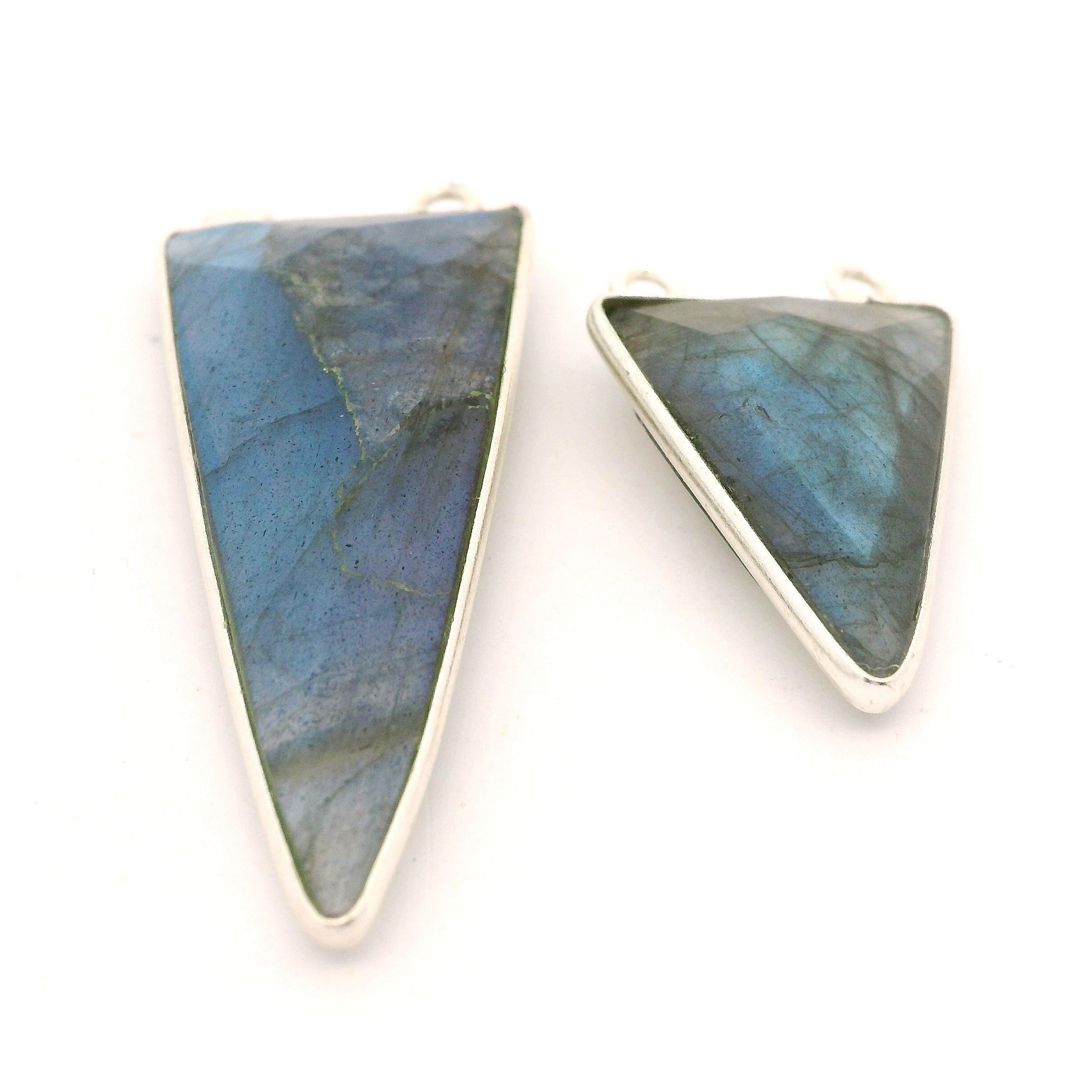 Triangle Shape Blue Labradorite Connector Bezel – 15x20mm & 15x35mm, 2 Loops, 925 Sterling Silver and Gold Plated Silver, Jewelry Link, 1 Pcs