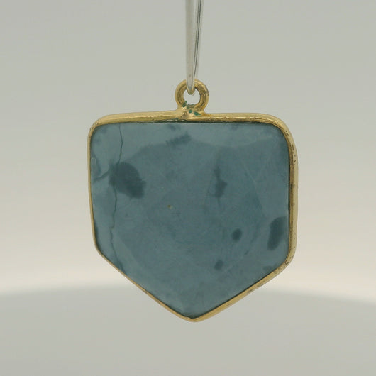 This natural blue opal pentagon bezel features a one loop design set in gold plated over 925 sterling silver.