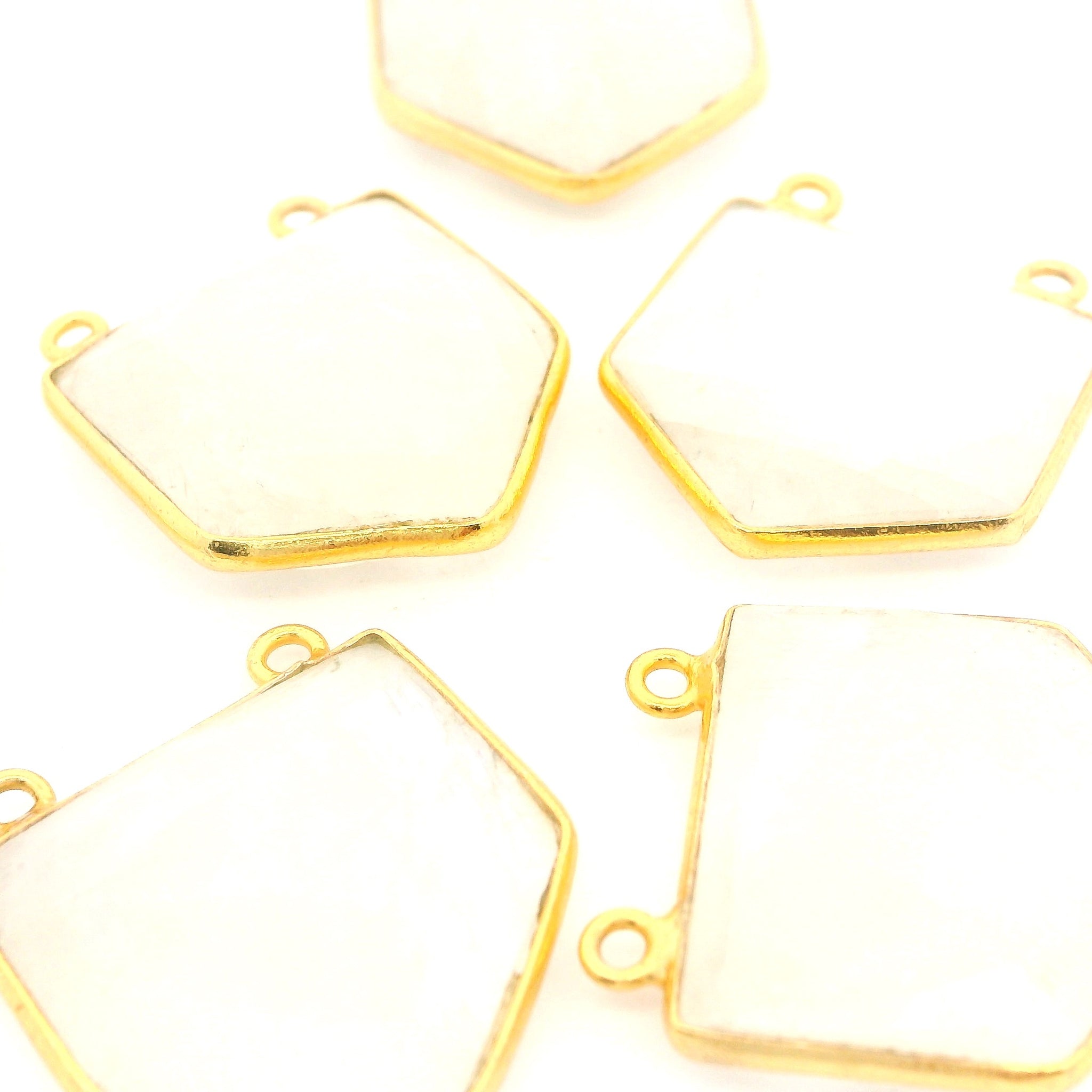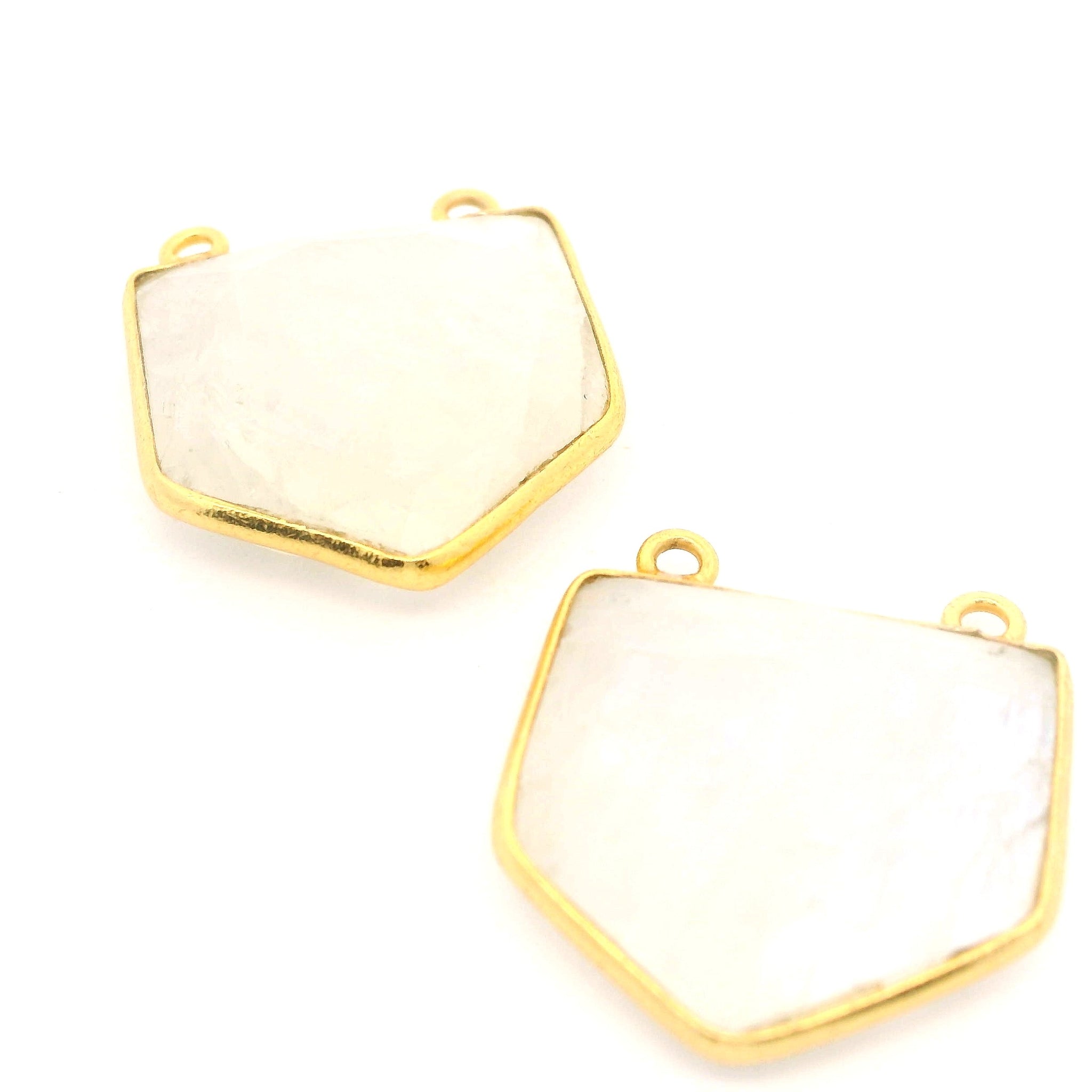 Rainbow Moonstone Pentagon Pendant / Connector – 18mm, Two Loops, 925 Sterling Silver & Gold Plated Silver, 1 Pc