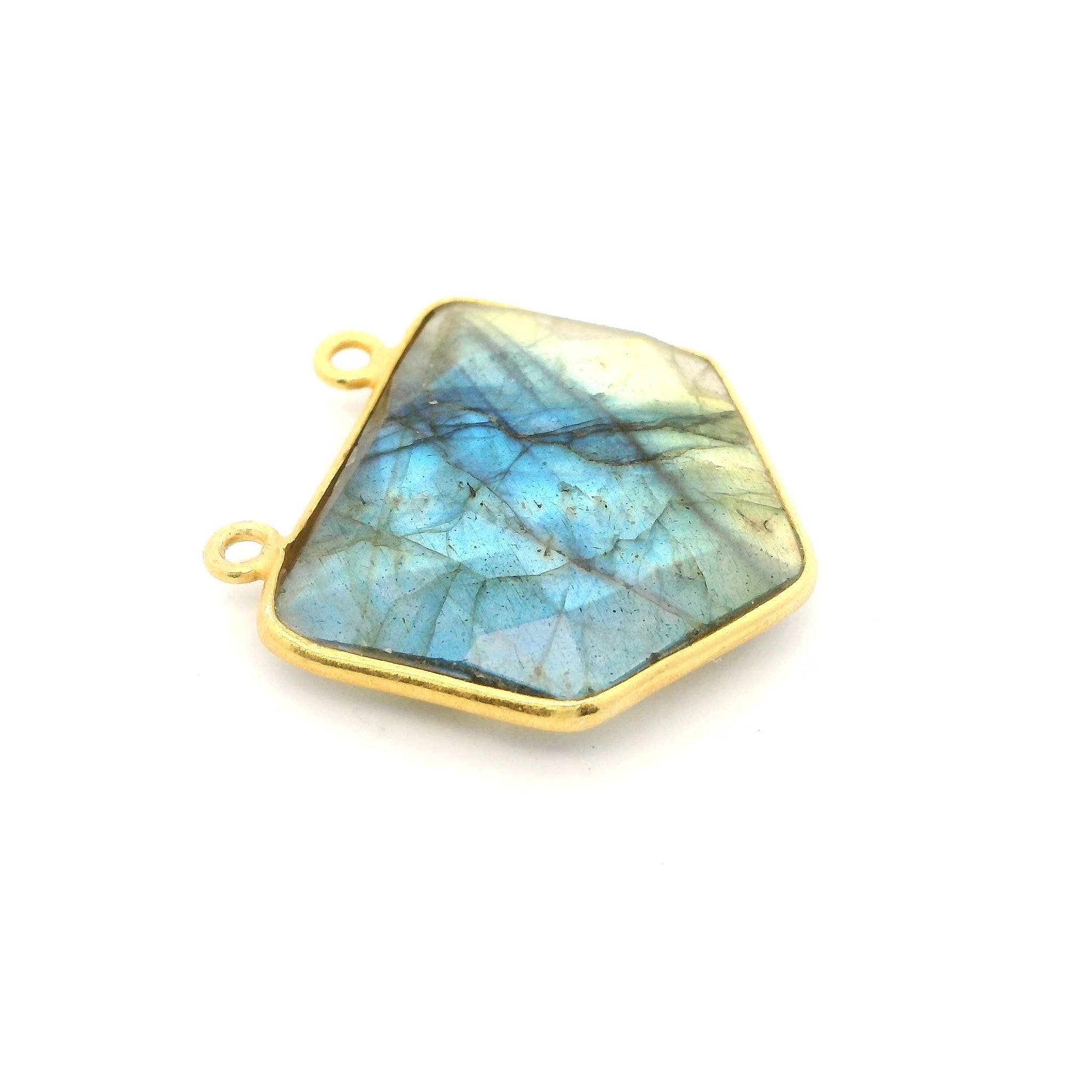 Multi Fire Labradorite Pentagon Connector – 18x18mm, 2 Loops, Bezel Set in 925 Sterling Silver & Gold Plated Silver, 1 Pc