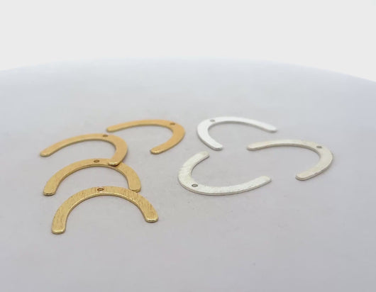 These U shaped earring, pendant, and charm findings feature a brushed gold finish and silver plated anti-tarnish coating on copper and brass components. The e-coated plating is designed to stay longer.