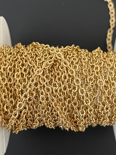 Gold Plated Brass Chain | Patterned Chain | Brass Chain with Real Gold Plated and Electroplated | Size 3.3mmX2.6mm | 1 Foot