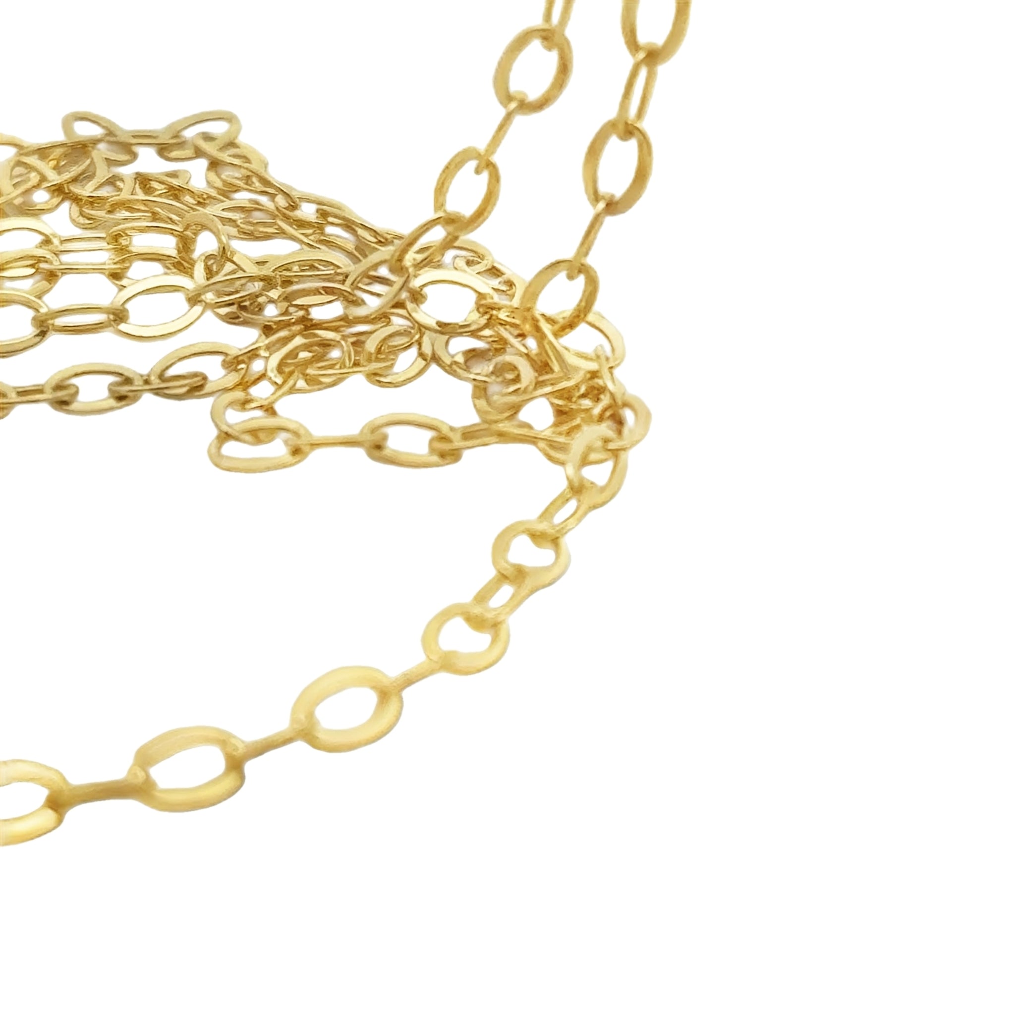 Gold Plated Brass Chain | Flat Oval Cable Chain | Smooth and flat chain | Electro Plated Chain | Size: 4.25mmX3mm | 1 Foot