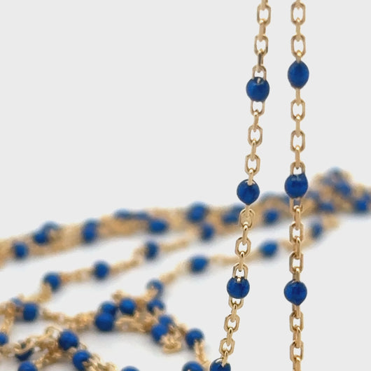 This 925 Sterling Silver DC cable chain features FLASH GOLD plating and blue enamel beads spaced 0.6mm apart.
