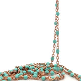 925 Sterling Silver DC Cable Chain Rose Gold Plated with Enamel Turquoise Beads – 0.6 mm Spacing – Bead Size 1.43 x 2.15 mm, 1 Foot.