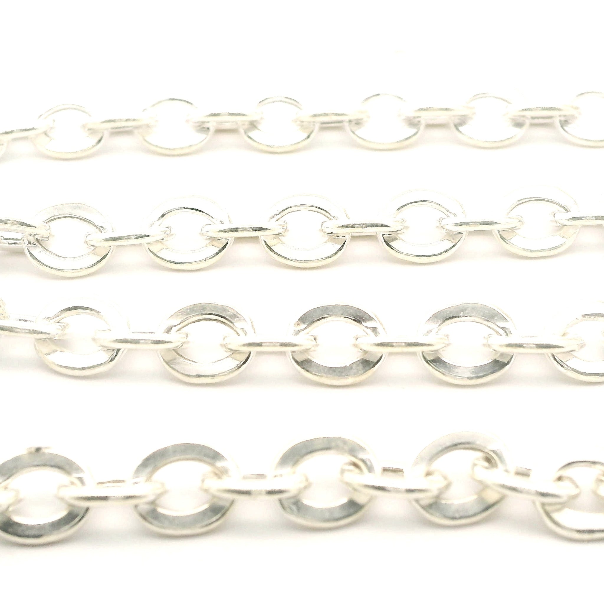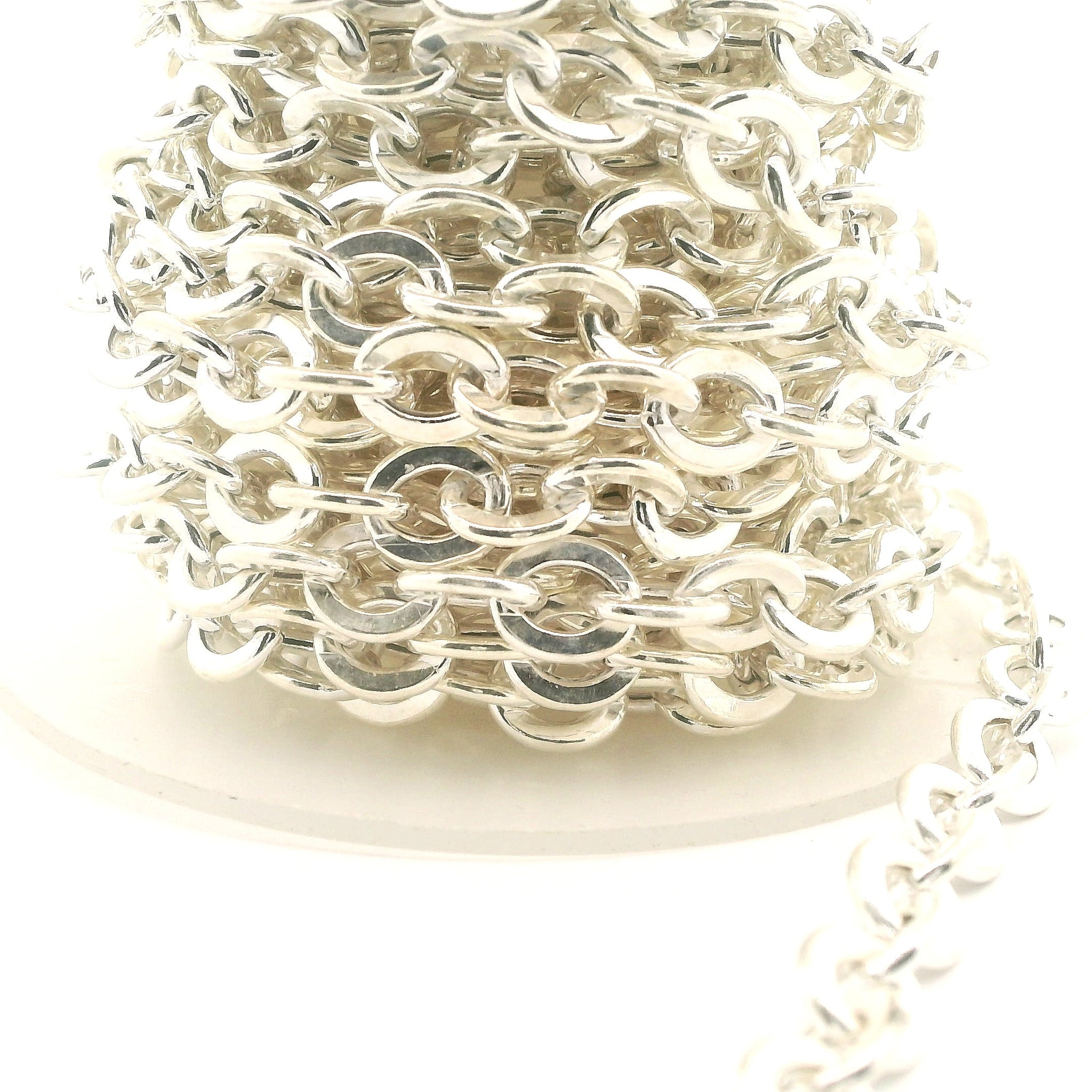 925 Sterling Silver Chain, Hollow, Flatt Cable Sterling Silver Chain White Silver | 1 Foot