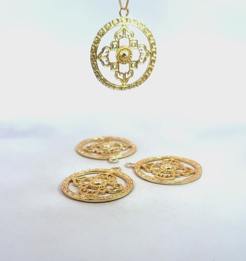 6 pcs Gold Finish E-coated Brushed Copper Pendants (32 × 29 mm and 34 × 29 mm)
