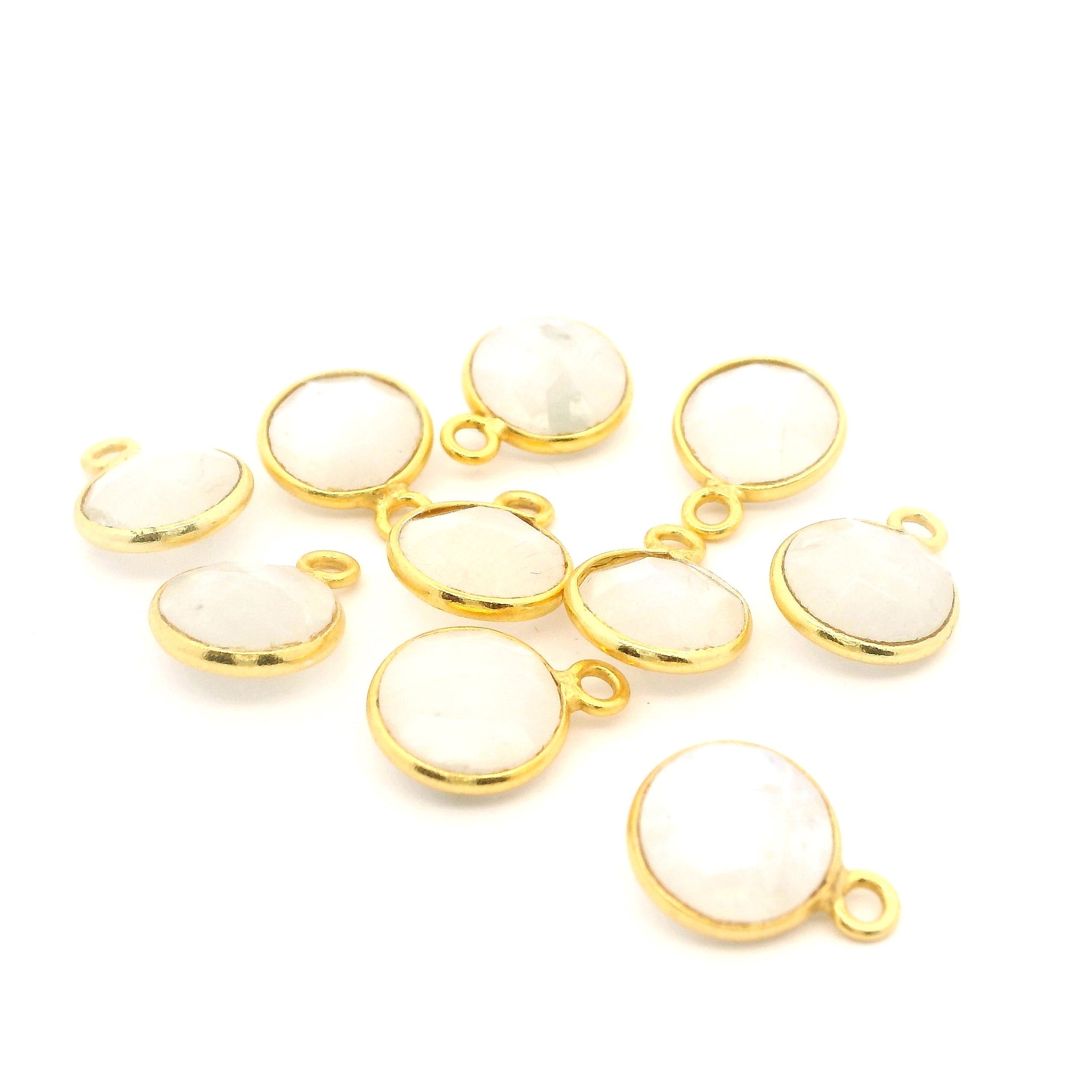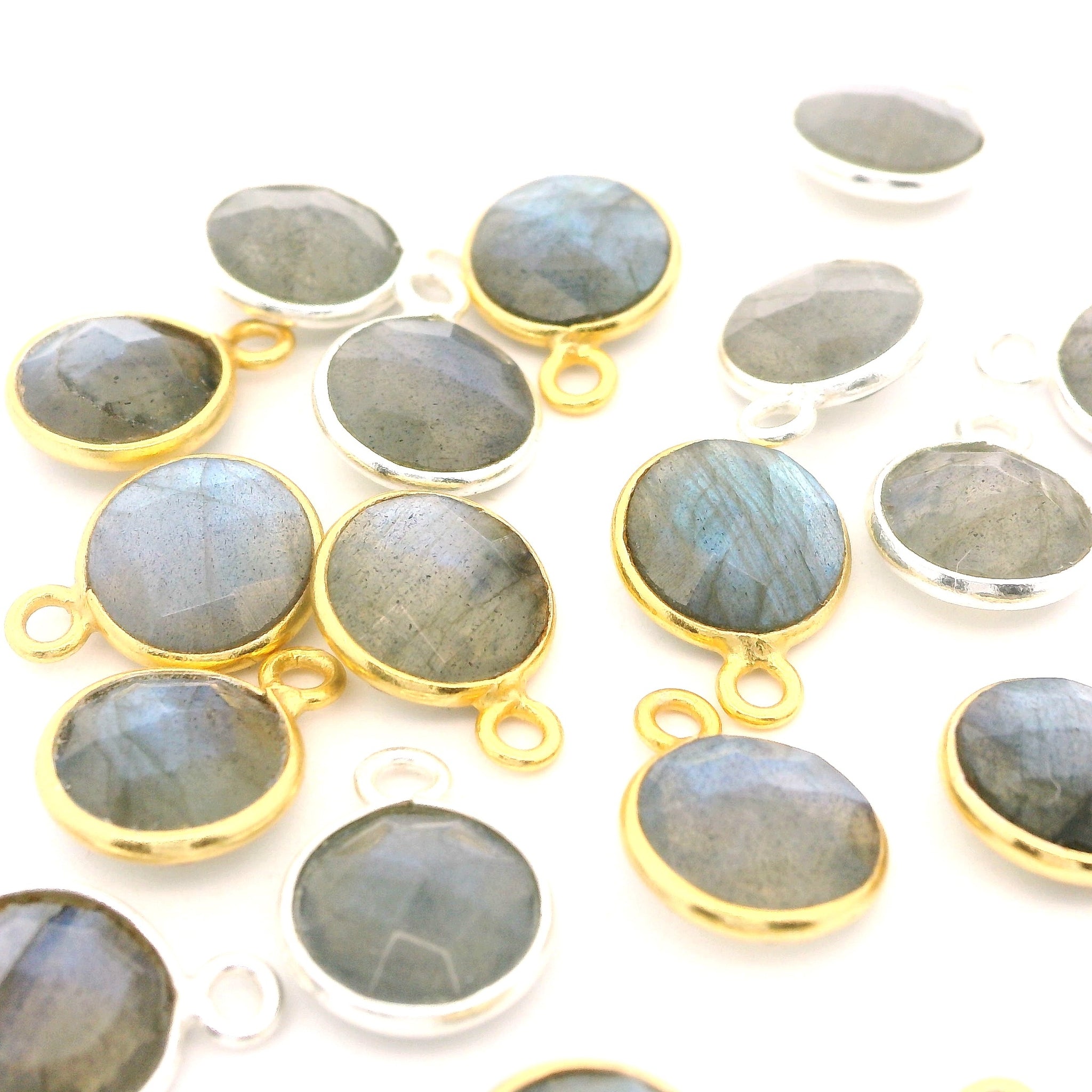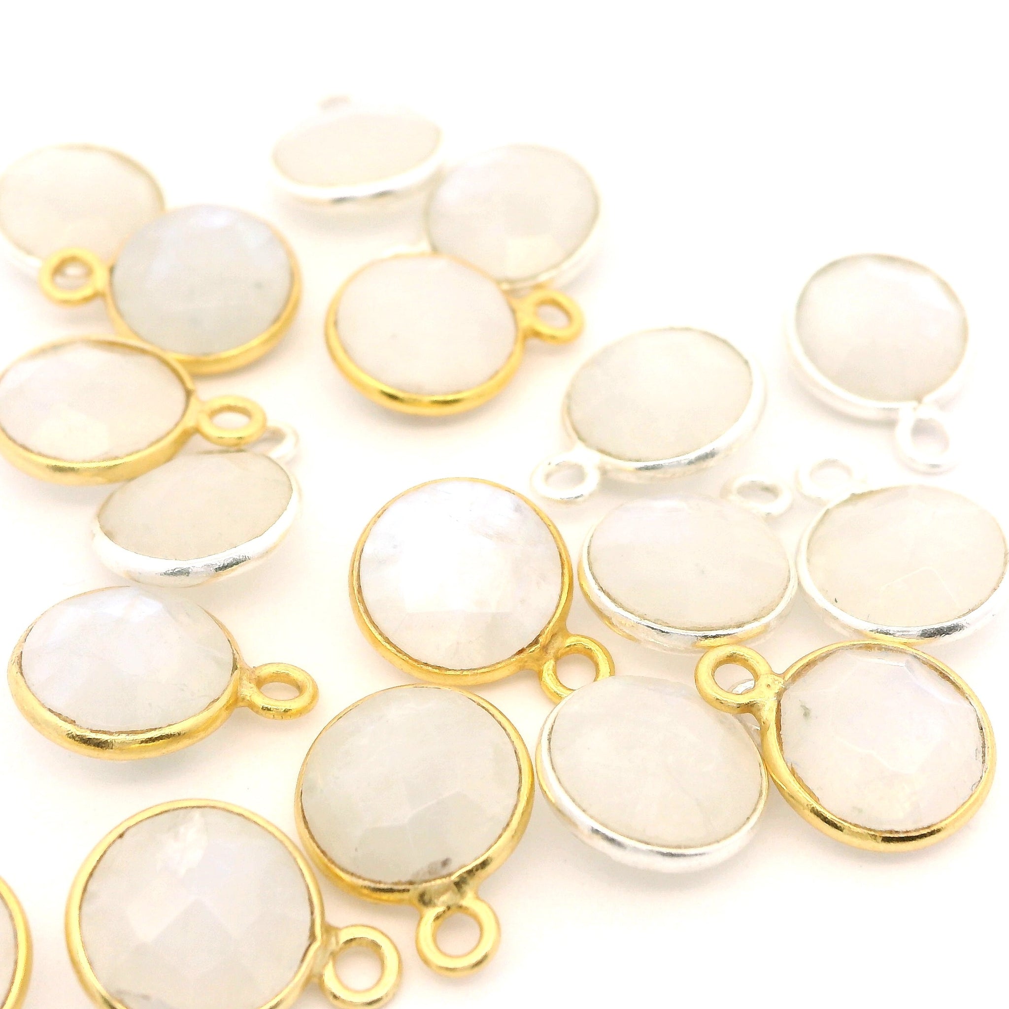 8mm Coin Gemstone Pendants – 1-Loop Charms | Sterling Silver & Gold Plated | Choose from 14 Gemstones | 10pcs Pack