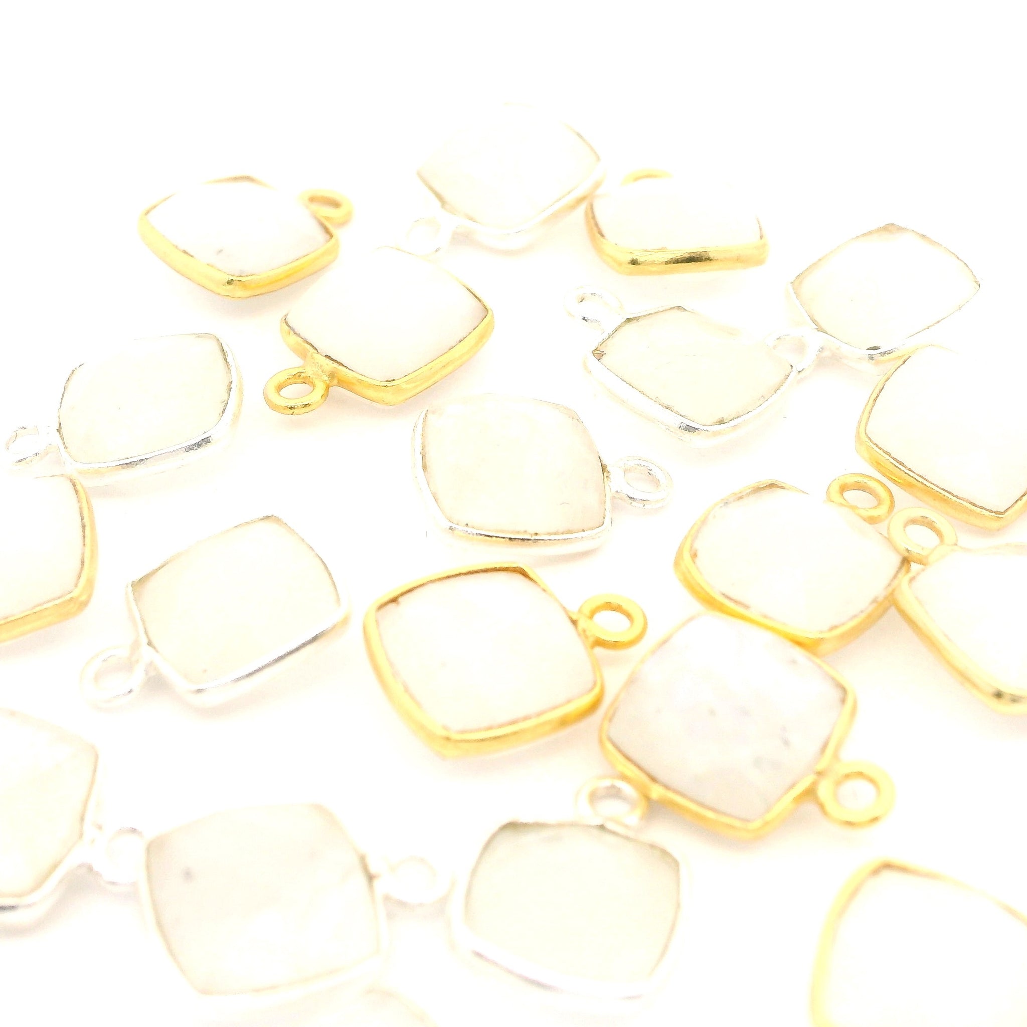 8mm Cushion Gemstone Pendants – 1-Loop Charms | Sterling Silver & Gold Plated | Choose from 14 Gemstones | 10pcs Pack