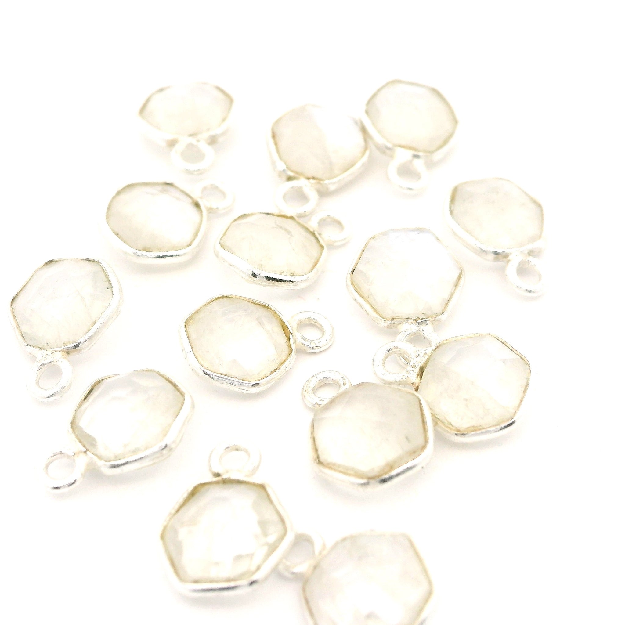 8mm Hexagon Gemstone Pendants – 1-Loop Charms | Sterling Silver & Gold Plated | Choose from 14 Gemstones | 10pcs Pack