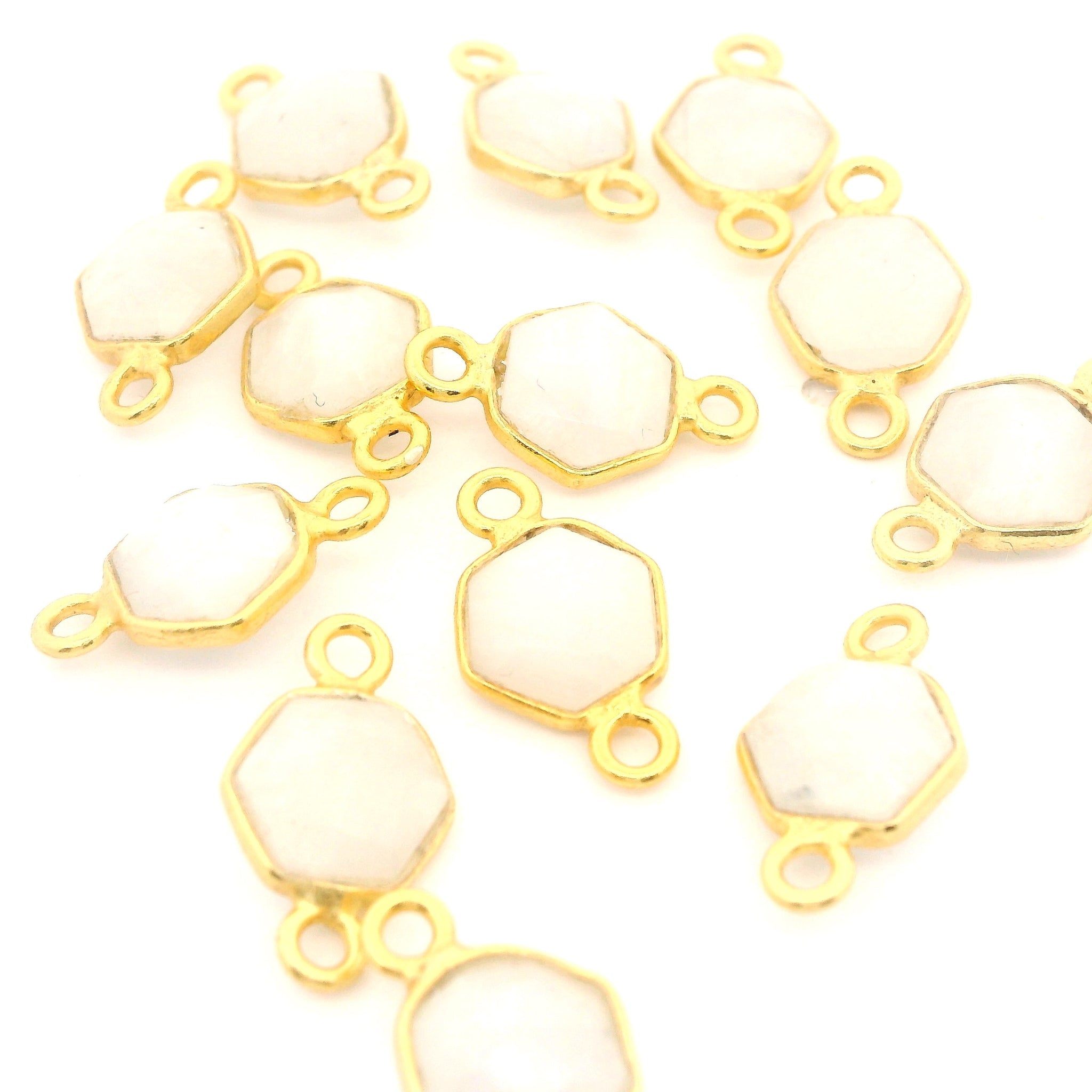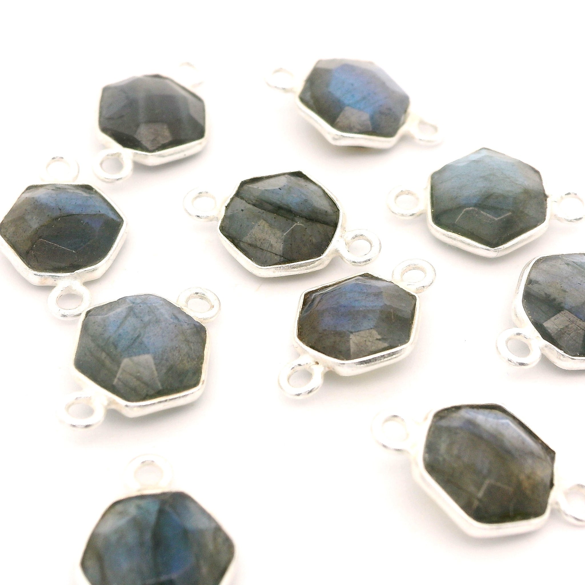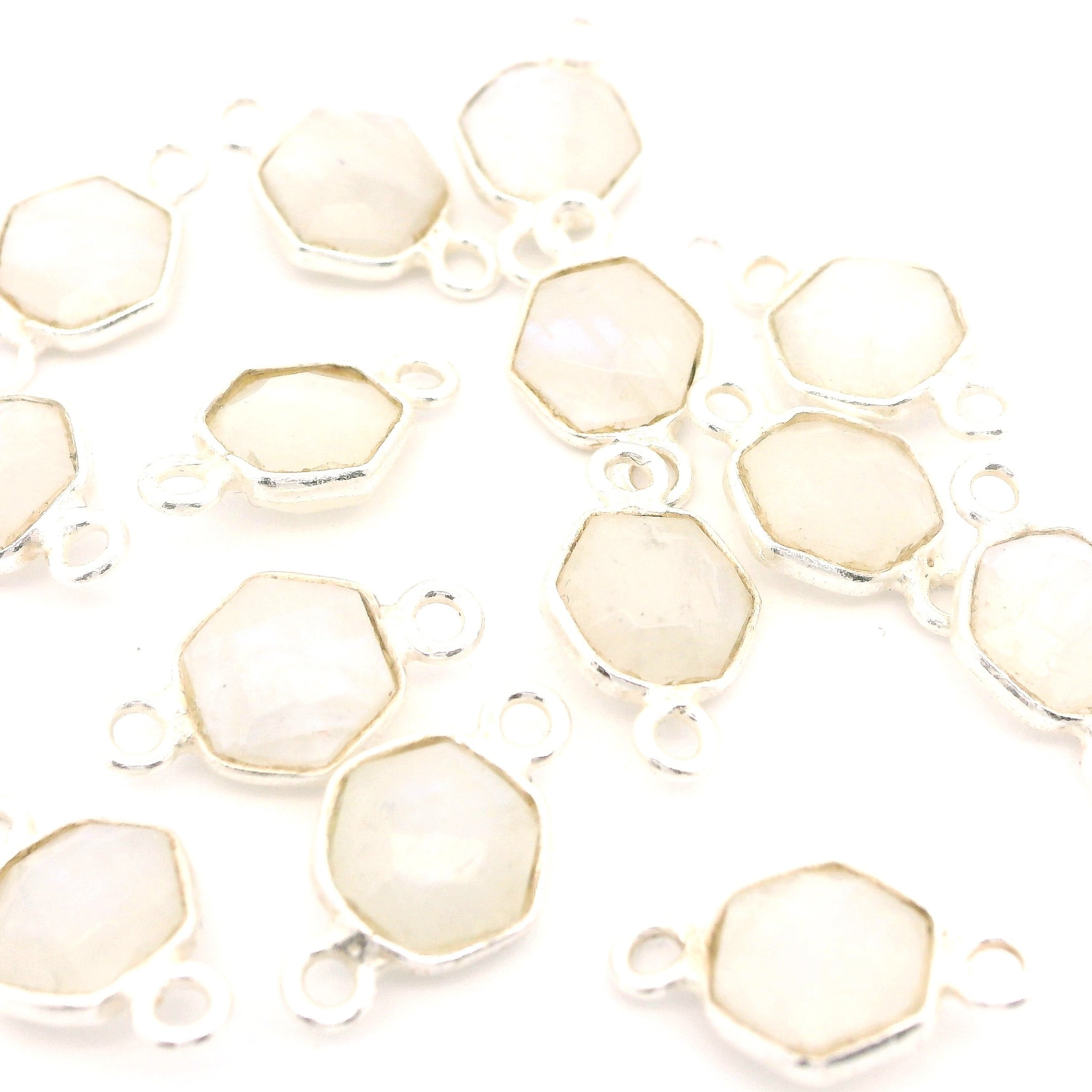 8mm Hexagon Gemstone Connectors – 2-Loop Bezels | Sterling Silver & Gold Plated | Choose from 14 Gemstones | 10pcs Pack