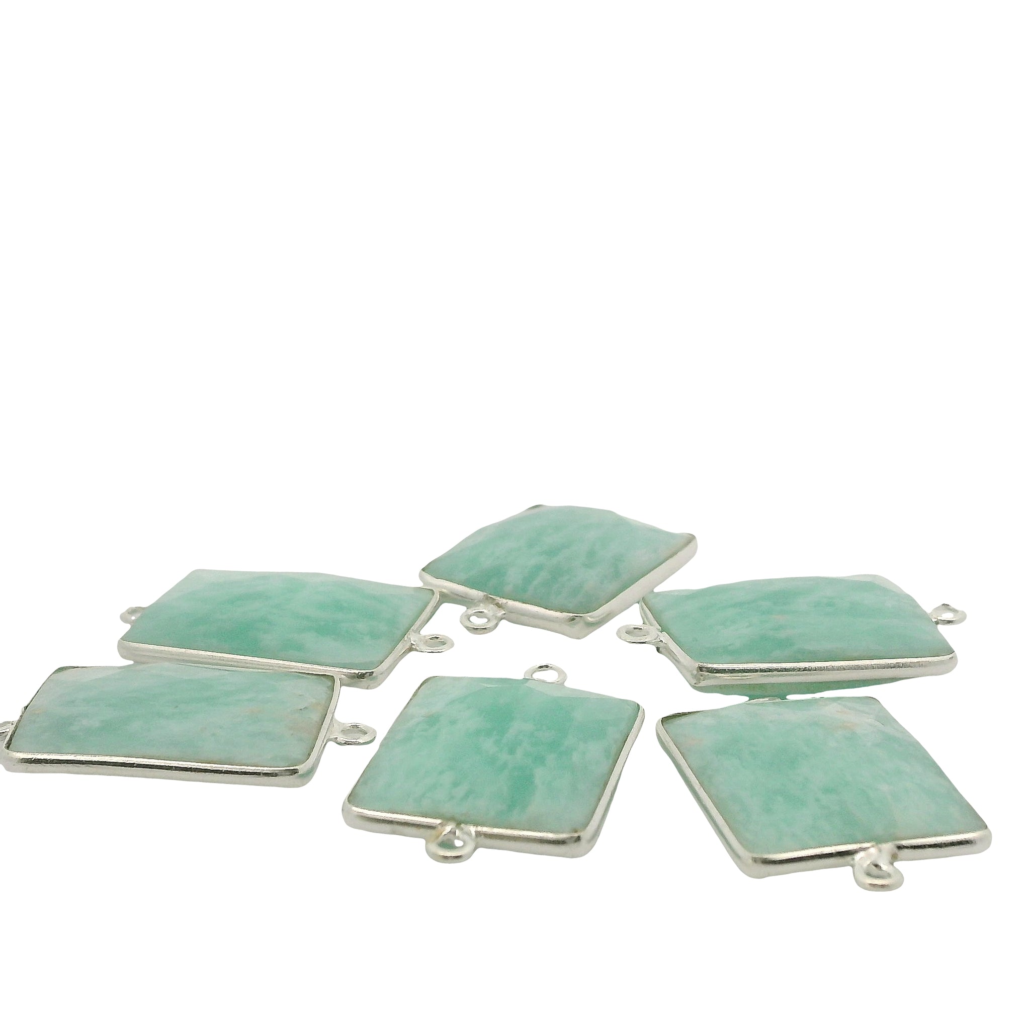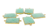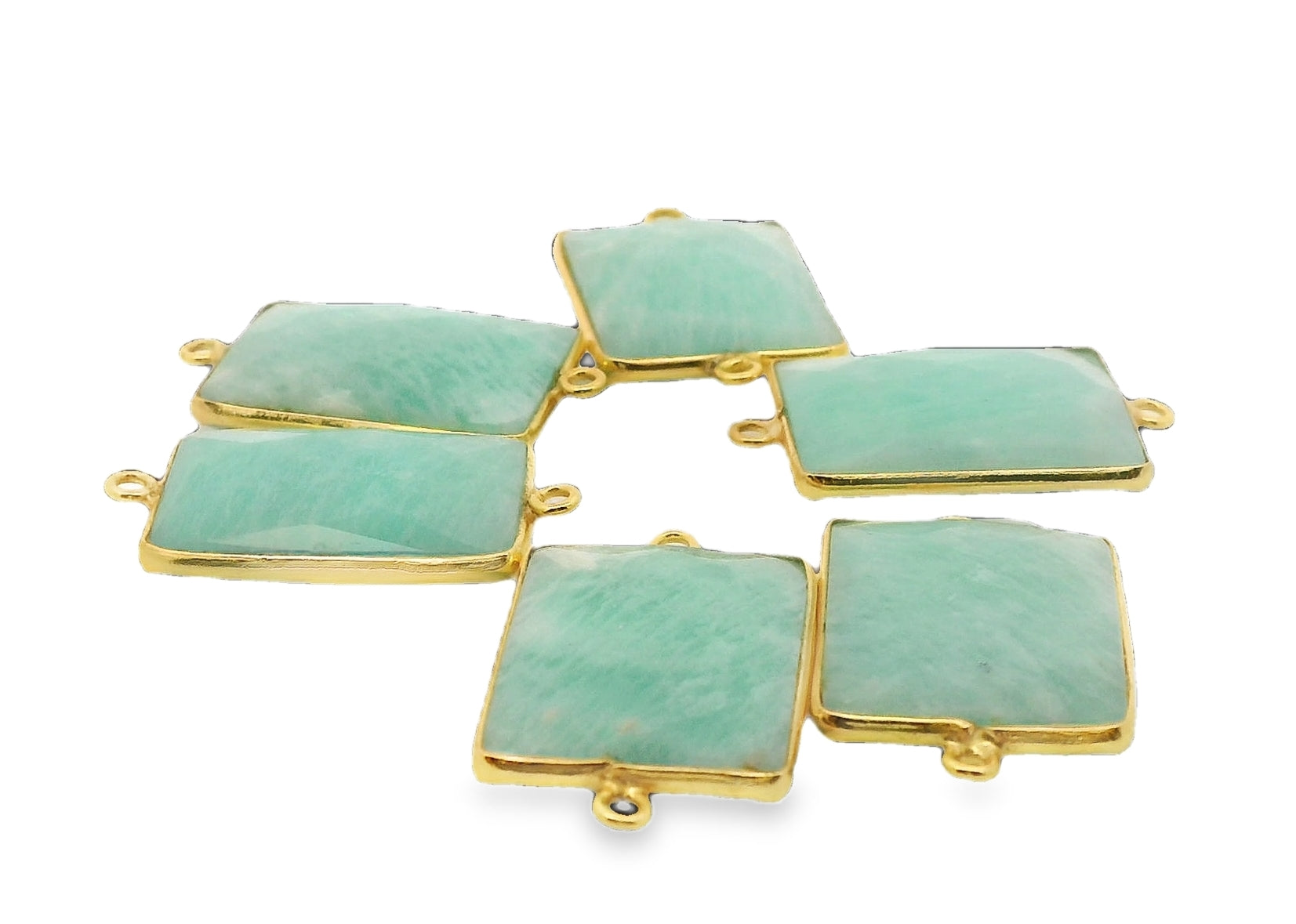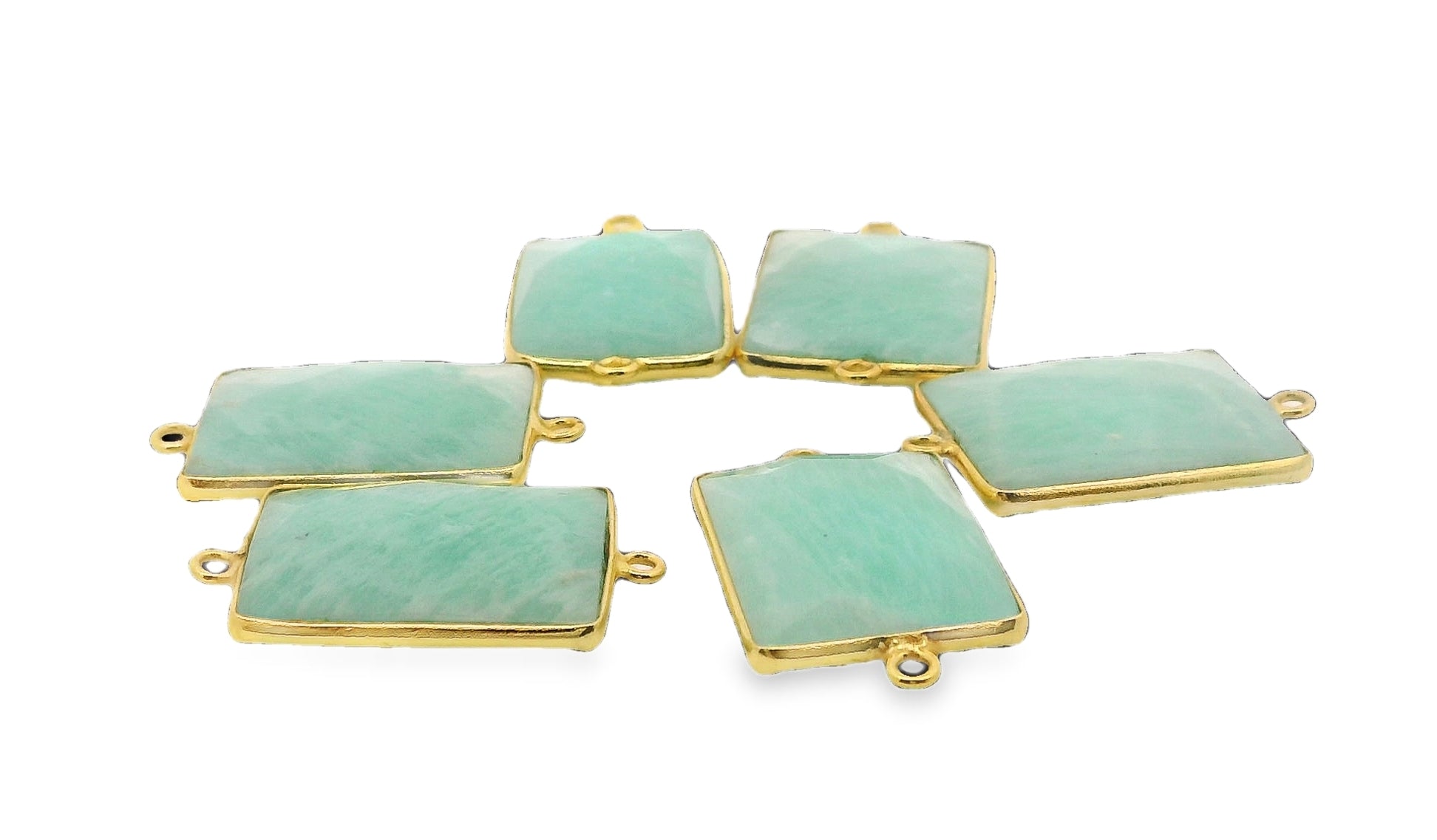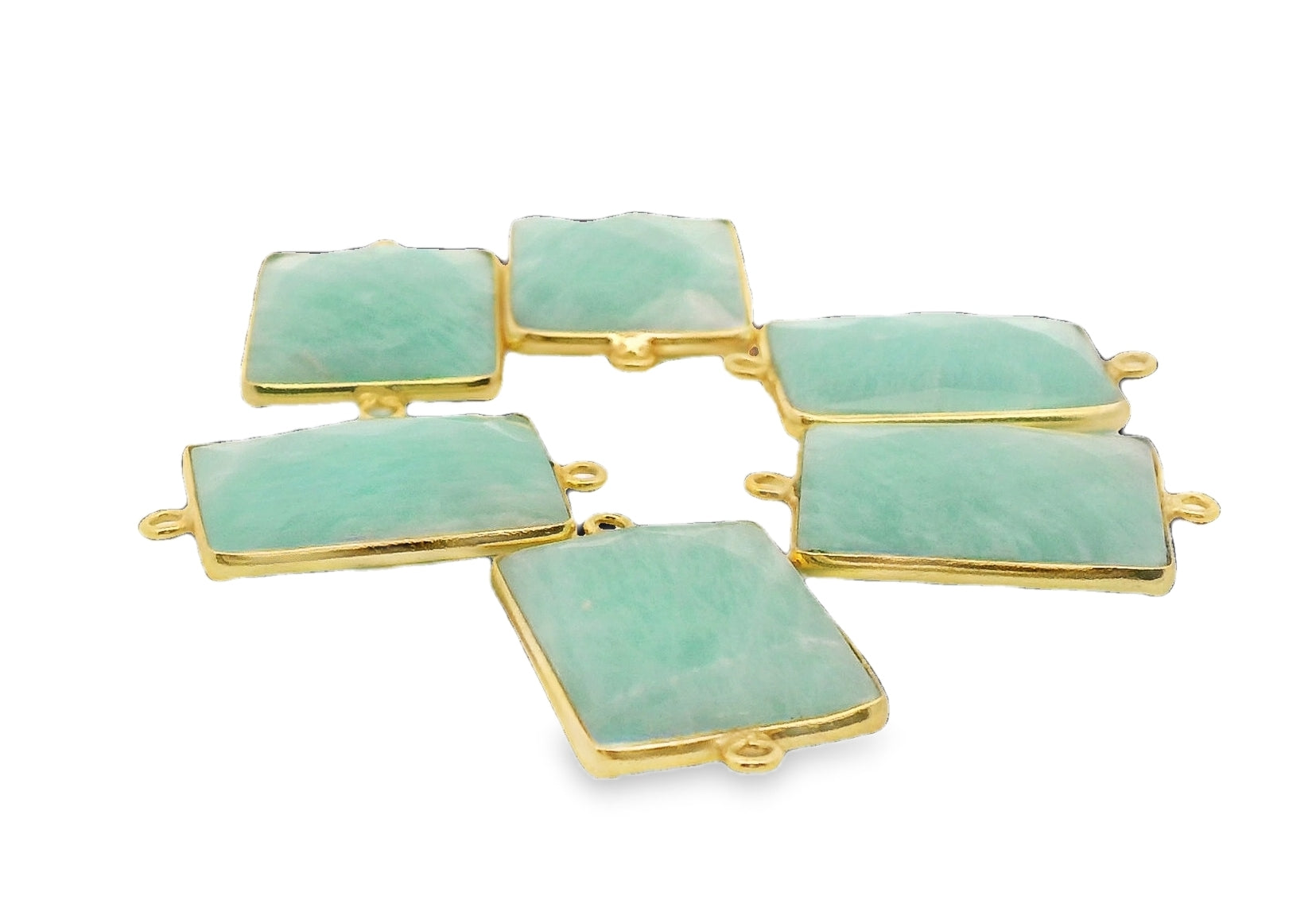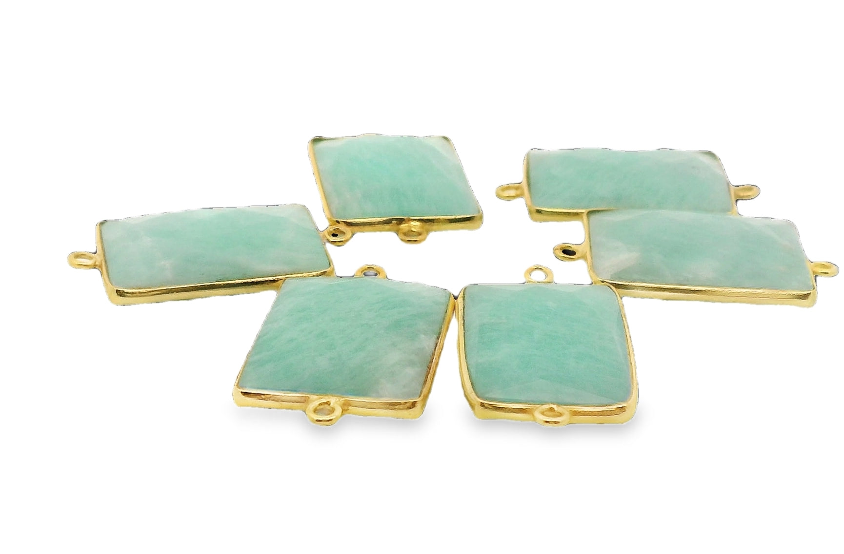 This listing is for One Piece high-quality Amazonite gemstone connectors, each in a beautiful Rectangle shape. The stones are set in gold-plated And Sterling Silver bezels made from genuine 925 sterling silver.