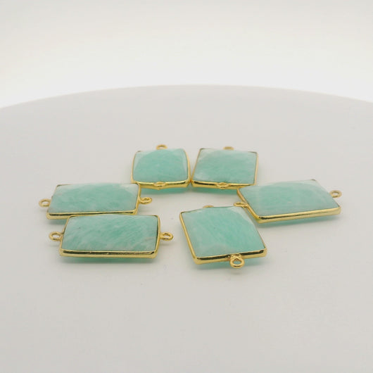 This high-quality Amazonite gemstone connector features a rectangle shape set in a beautiful gold-plated over 925 Sterling Silver bezel.