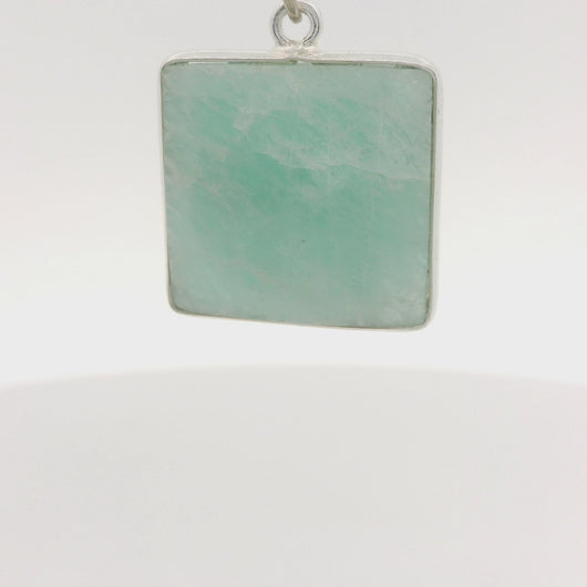 This natural Amazonite gemstone features a square shape set in a real gold-plated and sterling silver bezel with one loop.