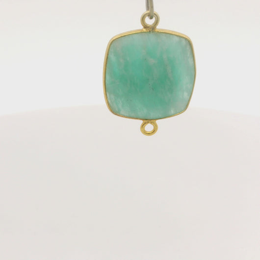 This natural amazonite cushion shape connector bezel features two loops and is set in gold plated silver and 925 sterling silver.