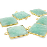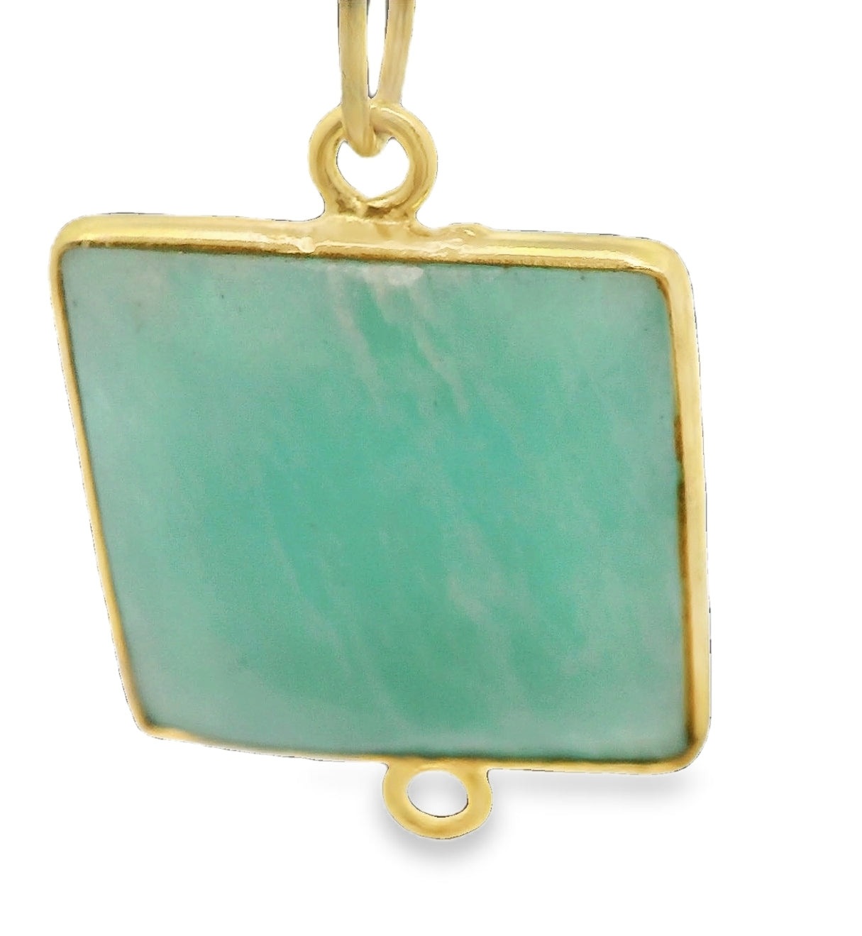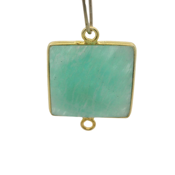 Amazonite Square Bezel Connector – 15mm, Two Loops | Gold Plated over 925 Sterling Silver | 1 Pc