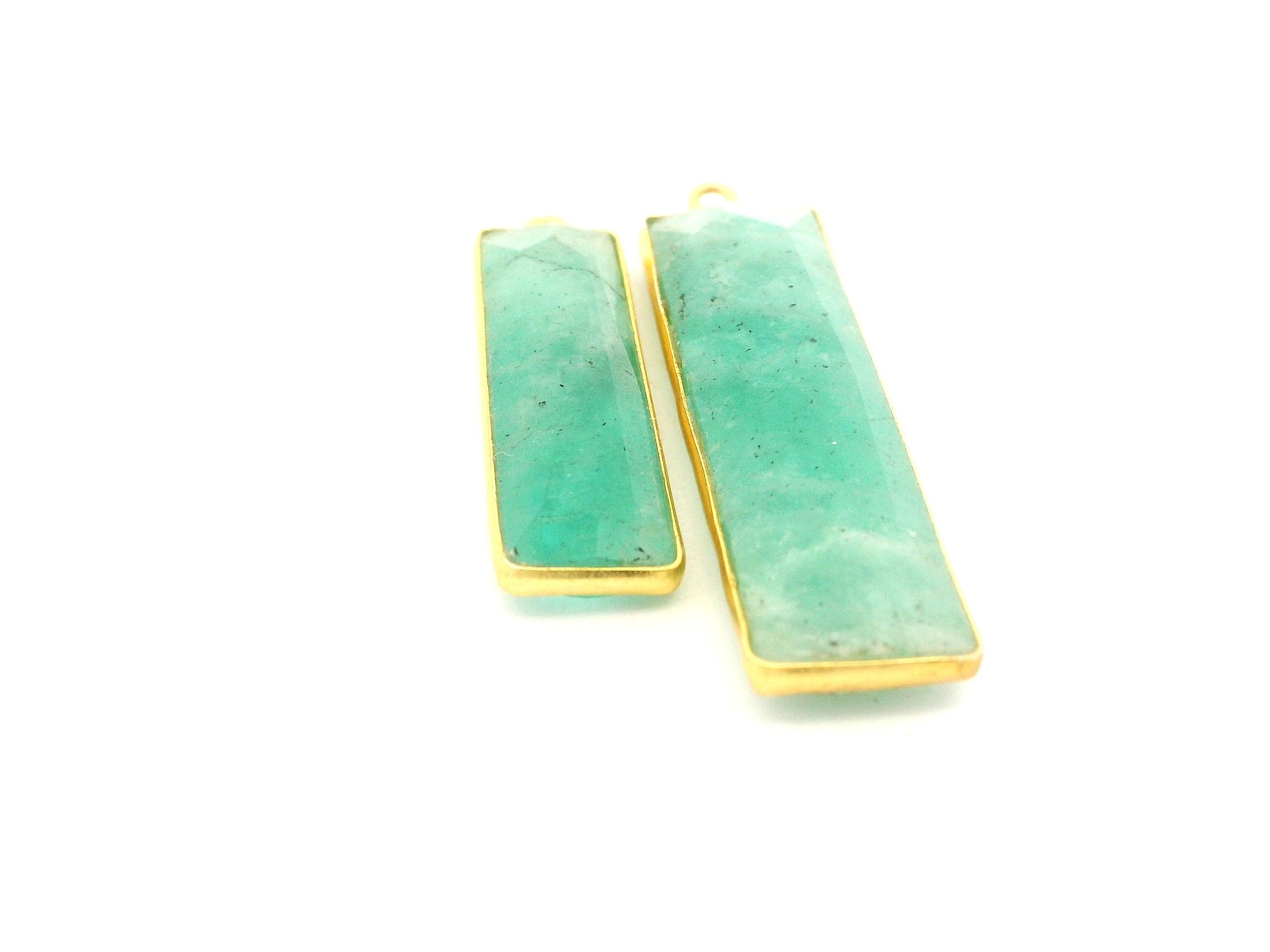 Amazonite Rectangle Bezel Pendant One Loop 8mx30mm 10x40mm Gold Plated Over Sterling Silver / 925 Silver, 1pc