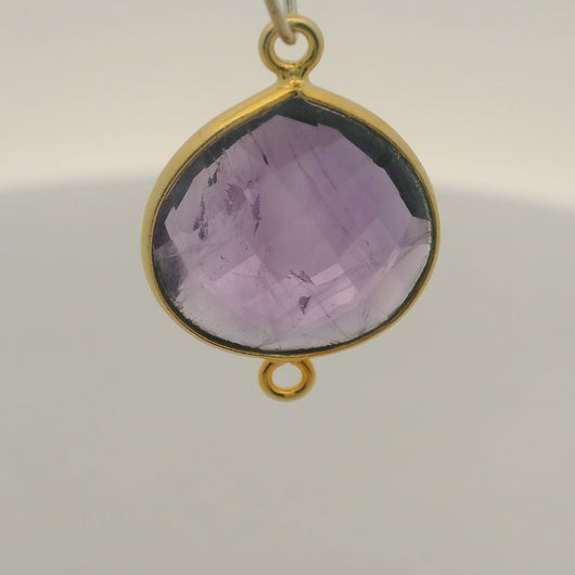 Natural Amethyst Heart Connector Bezel (15mm) - Gold Plated 925 Sterling Silver - 1 pcs