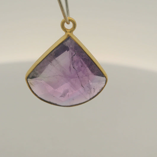 Natural Amethyst Quarter Circle Bezel Connector One Loop (17mm) - Gold Plated over Sterling Silver - 1 pcs