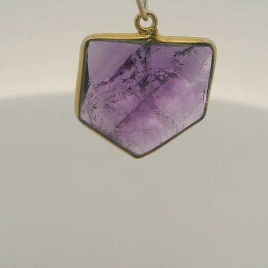 Natural Amethyst Pentagon Bezel Pendant One Loop (18 × 18 mm) - 925 Sterling Silver & Real Gold Plated Silver - 1 pcs