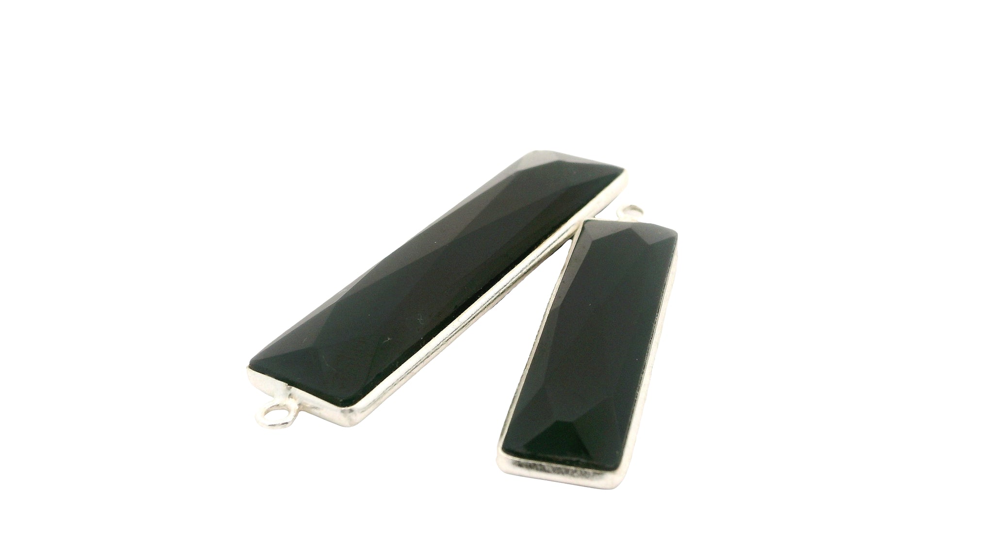 Stunning black onyx rectangle pendants available in 8x30mm and 10x40mm sizes.