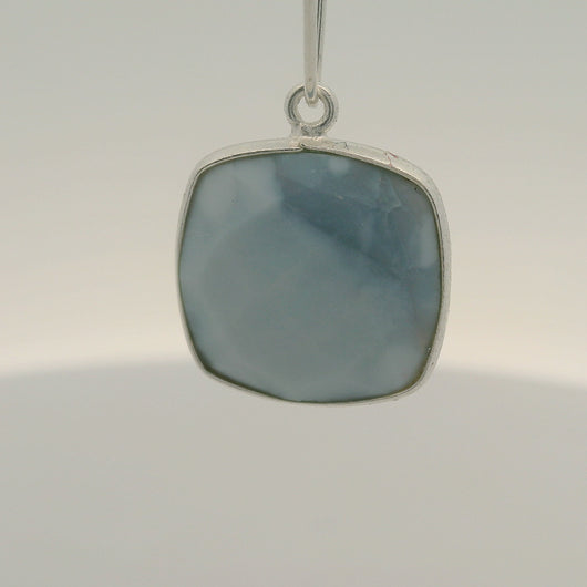 This natural blue opal cushion bezel features a one loop design set in 925 sterling silver.