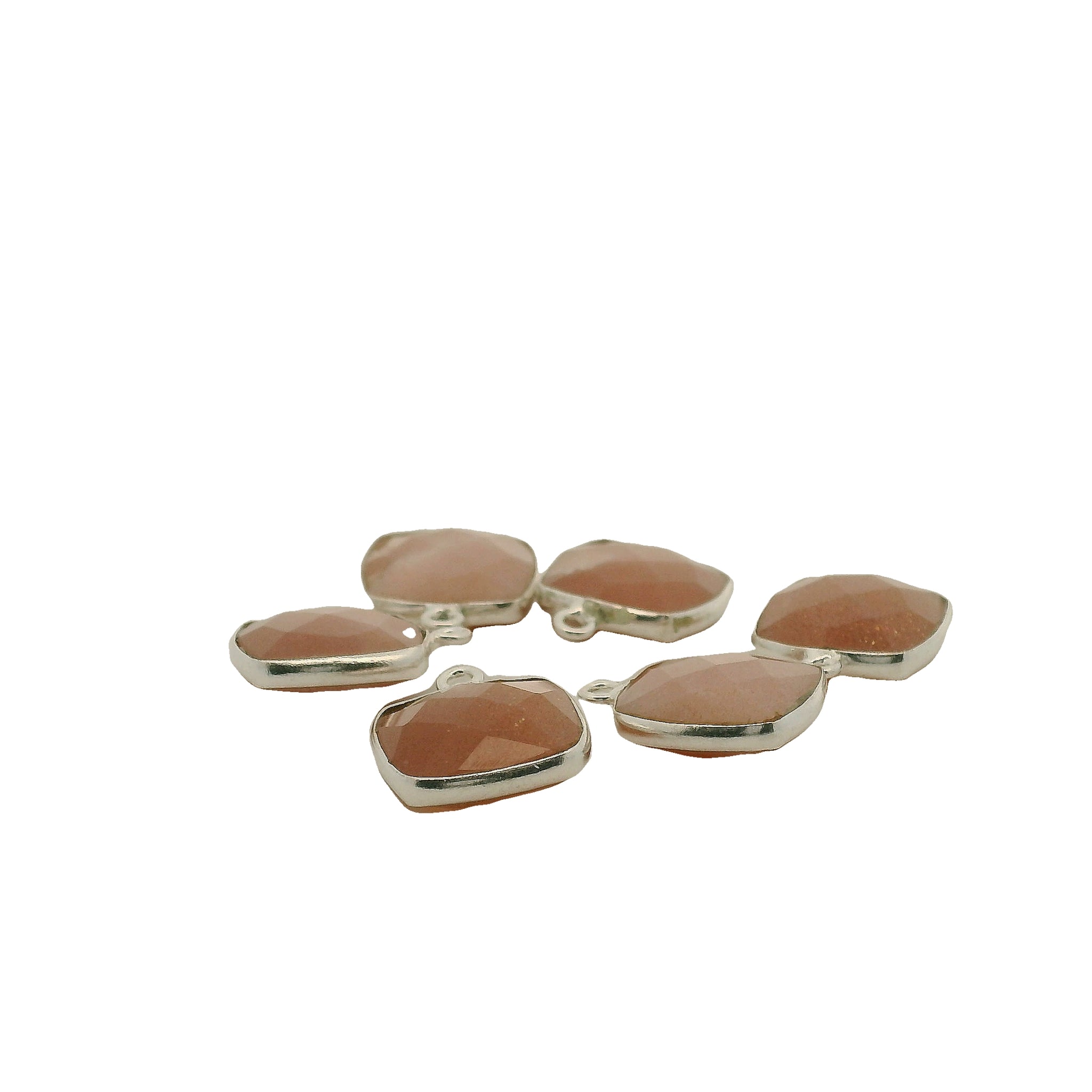 This listing is for one piece of Cushion Peach Moonstone Bezel one loop.