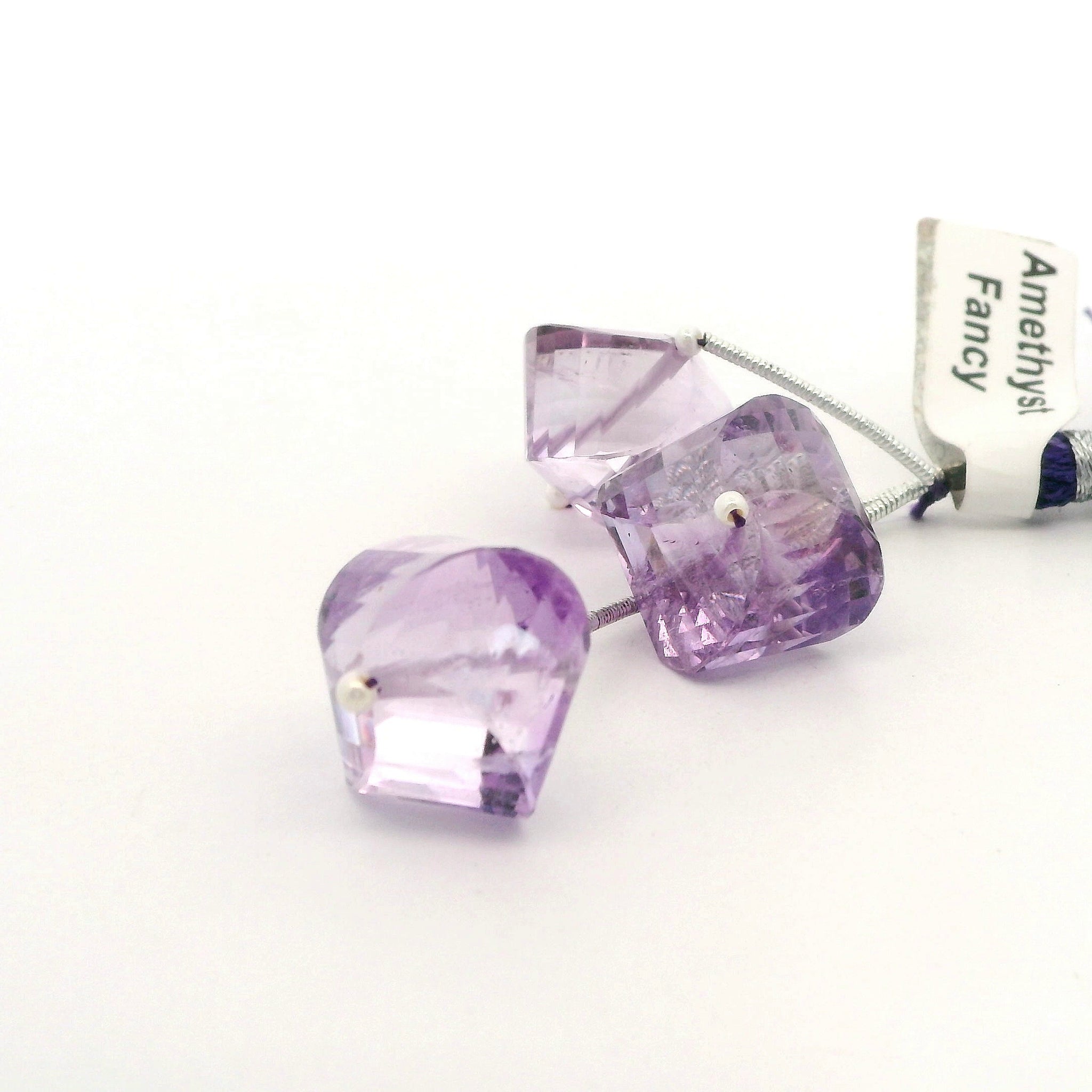 Faceted Light Purple Amethyst Cube Beads – Natural Amethyst Gemstone Beads for Jewelry Making (3 Beads)