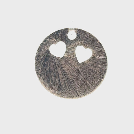 This heart-shaped fancy pendent features a gold finish and silver plating with an E-coating and brushed finish.