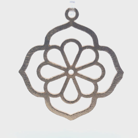 These flower shaped pendant connectors feature a brushed finish and are available in gold finish and silver plated options. Made from copper or brass, these handmade findings are e-coated to help the finish last longer.