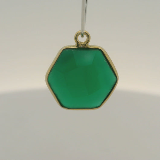 This natural green onyx hexagon bezel pendant features a one-loop design set in 925 sterling silver and gold plated over silver.