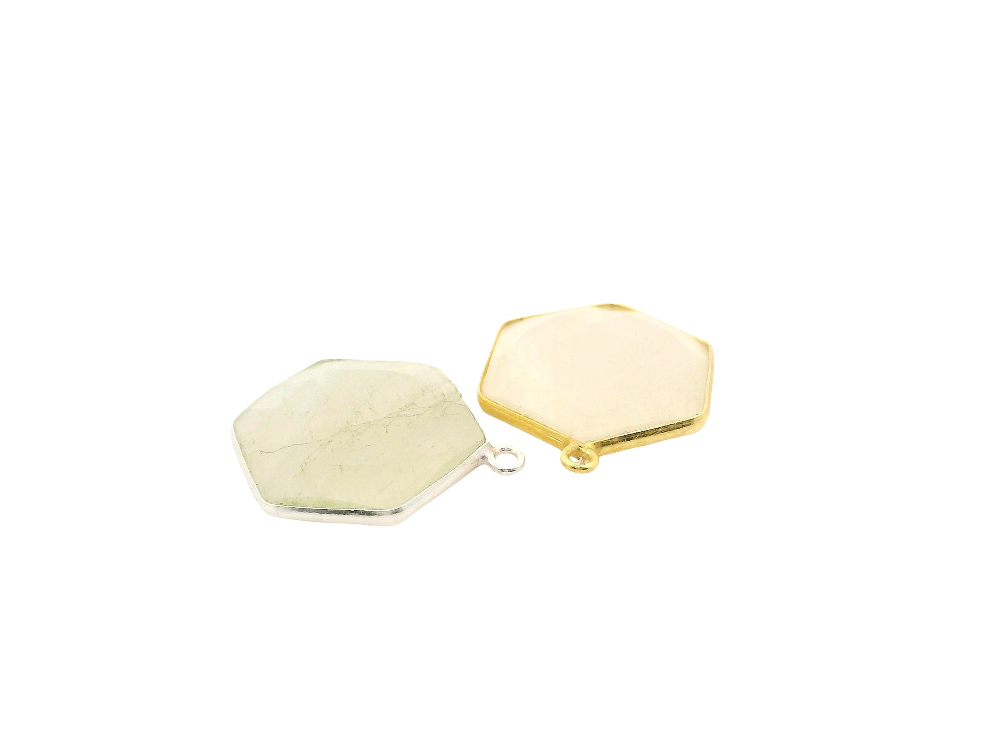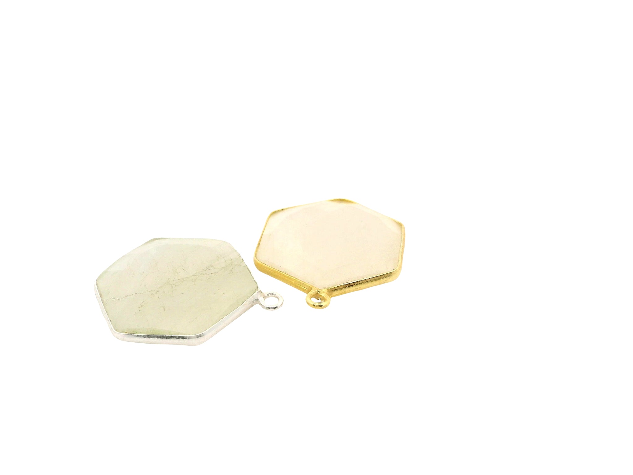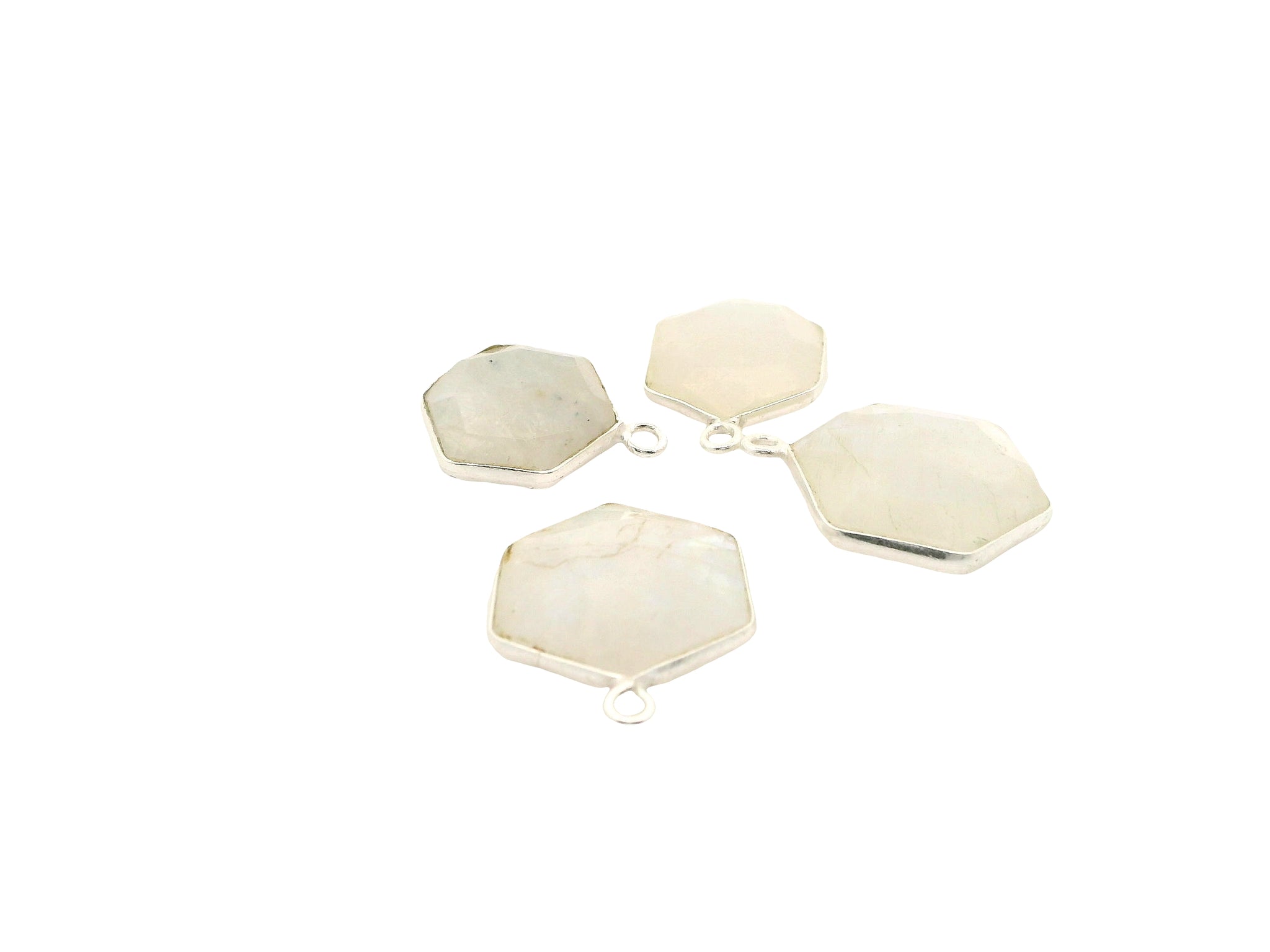Hexagon Rainbow Moonstone Bezel 12mm, 15mm, 18mm – One Loop – Gold Plated Over Sterling Silver / 925 Silver – 1pcs