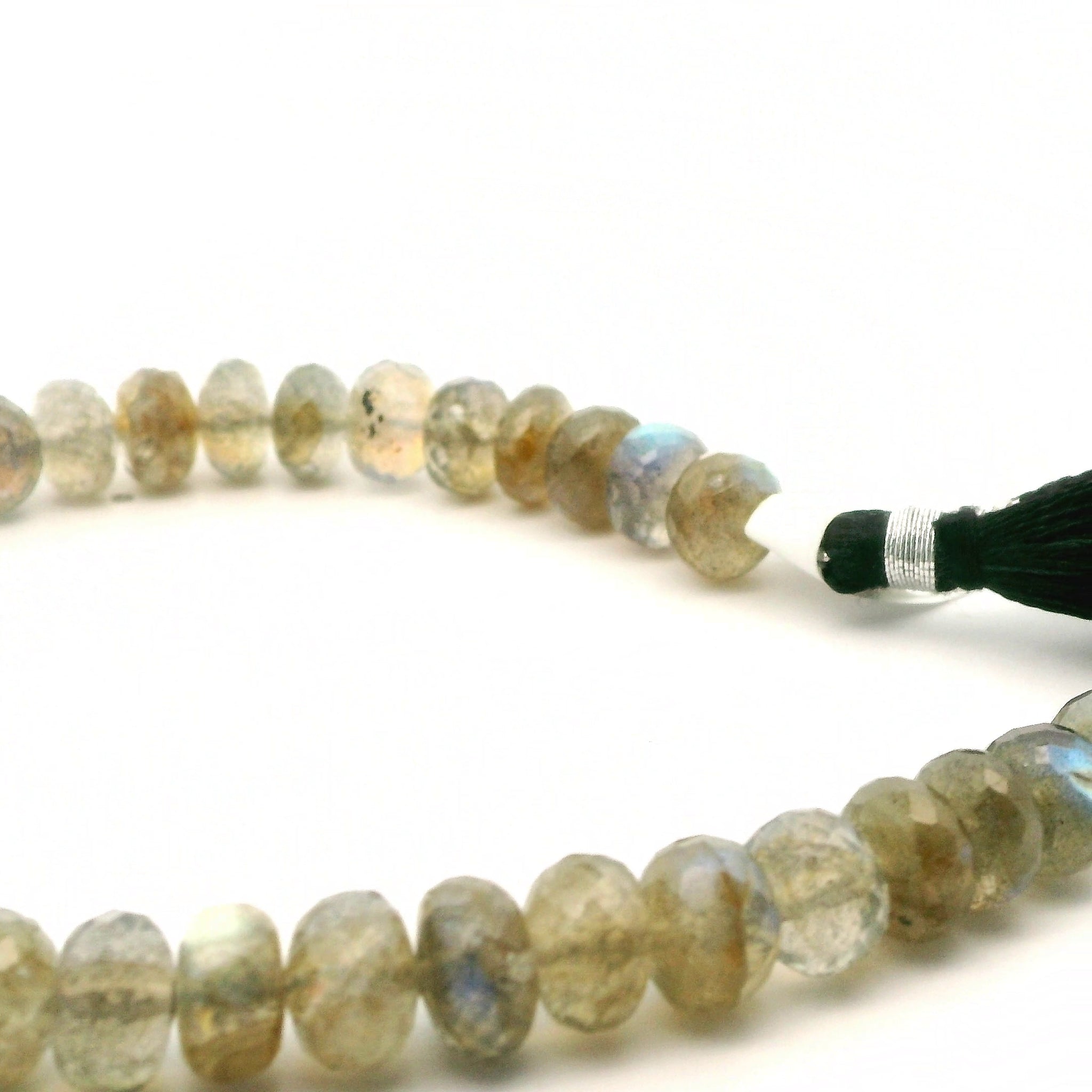 Labradorite Faceted Rondelle Bead Strand 4mm x 6mm – Natural Flash, 30 Beads