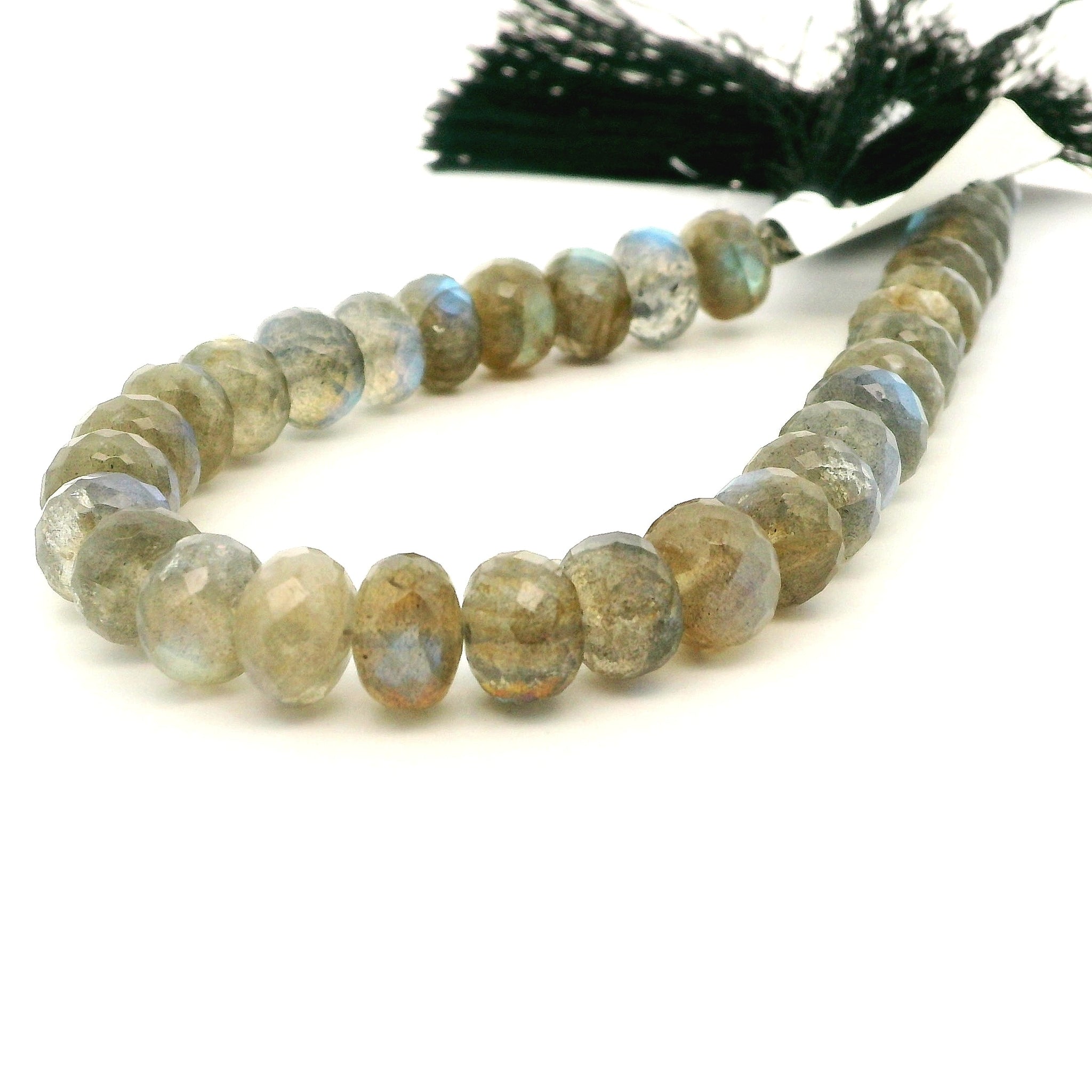 Labradorite Faceted Rondelle Bead Strand 8mm x 12mm – Natural Flash Gemstone, 32 Beads, Approx. 13–14 Inch Strand