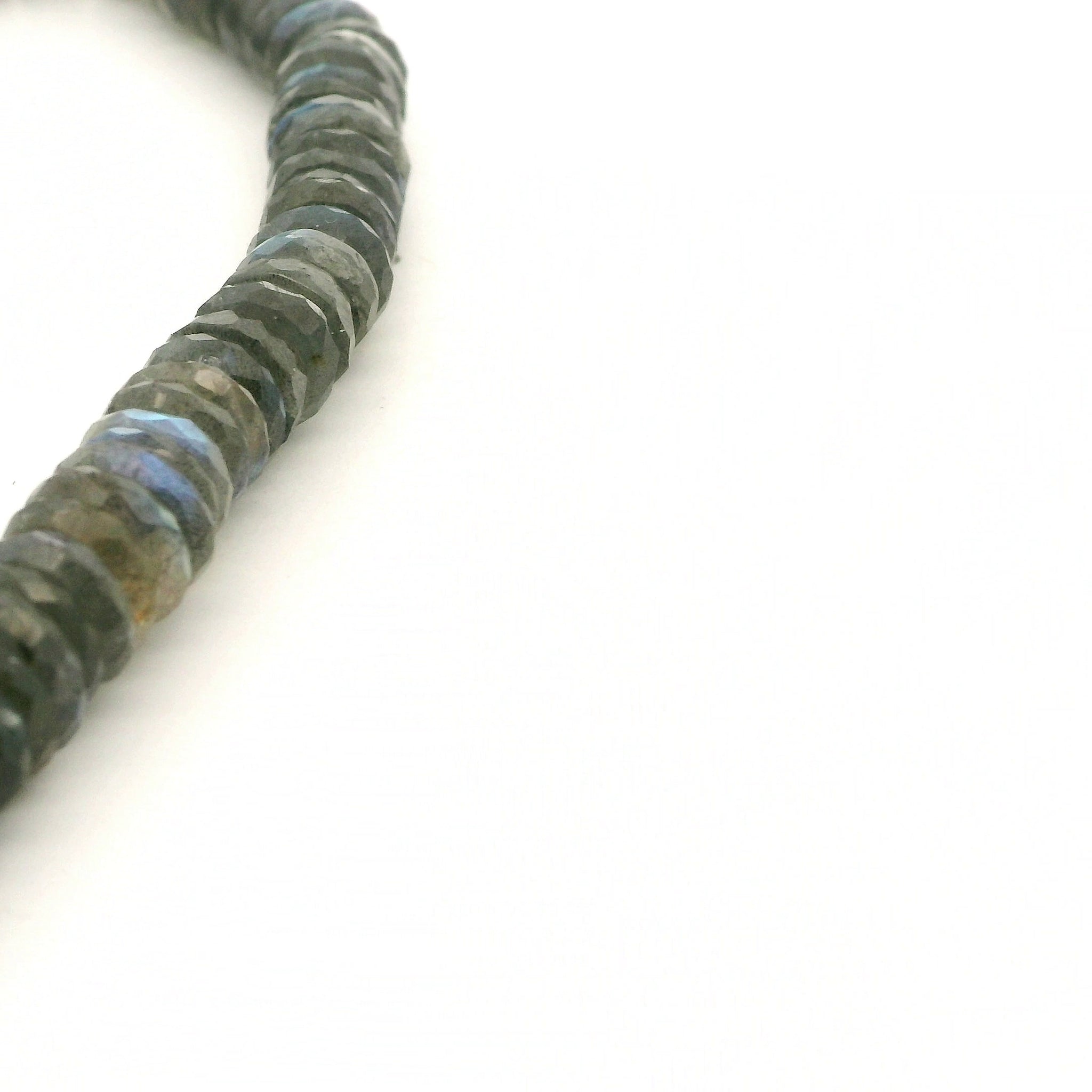 Labradorite Faceted Rondelle Beads 6–7mm Natural Gray Labradorite Strand 13–14 Inch