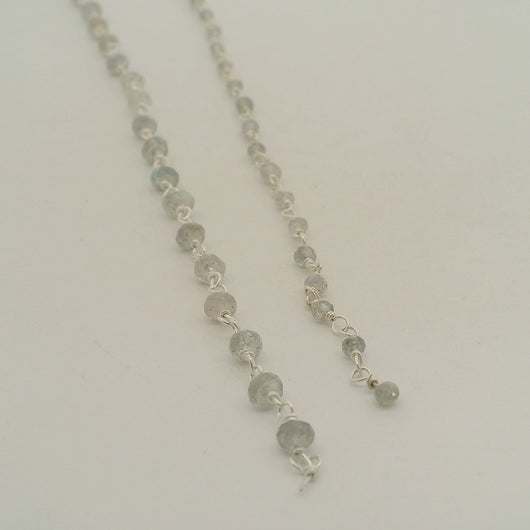 This natural AAA quality labradorite gemstone wire chain features beads with fire and transparency on gold plated sterling silver wire.
