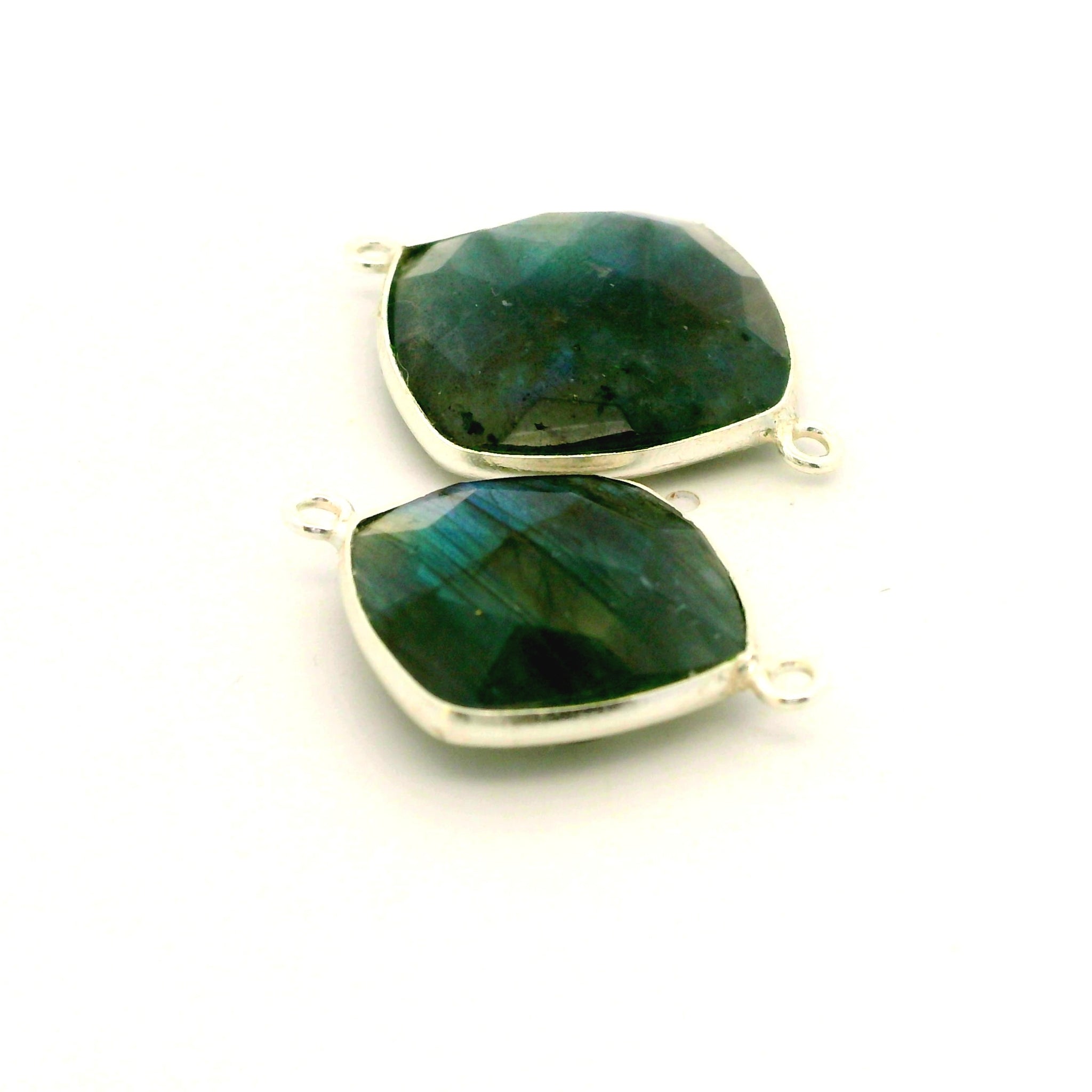Enhance your jewelry creations with our Multi Fire Labradorite Cushion Connectors, available in 12mm, 15mm, and 18mm sizes. Featuring a 2-corner loop design, these connectors showcase the unique blue-green flash of natural labradorite, bezel-set for durability and elegance.