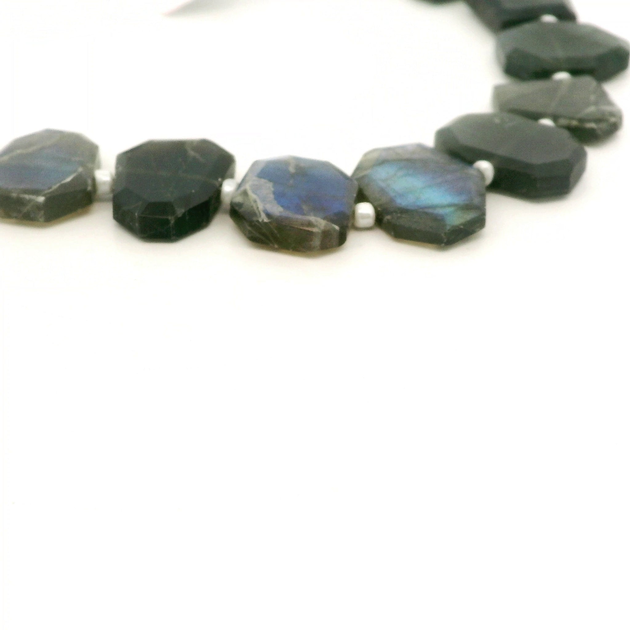 Natural Fire Labradorite Faceted Slice Beads Strand – Freeform Geometric Labradorite Gemstone Slices with Blue Flash – Approx. 15 Beads per Strand – Premium Fire Labradorite for Jewelry Making