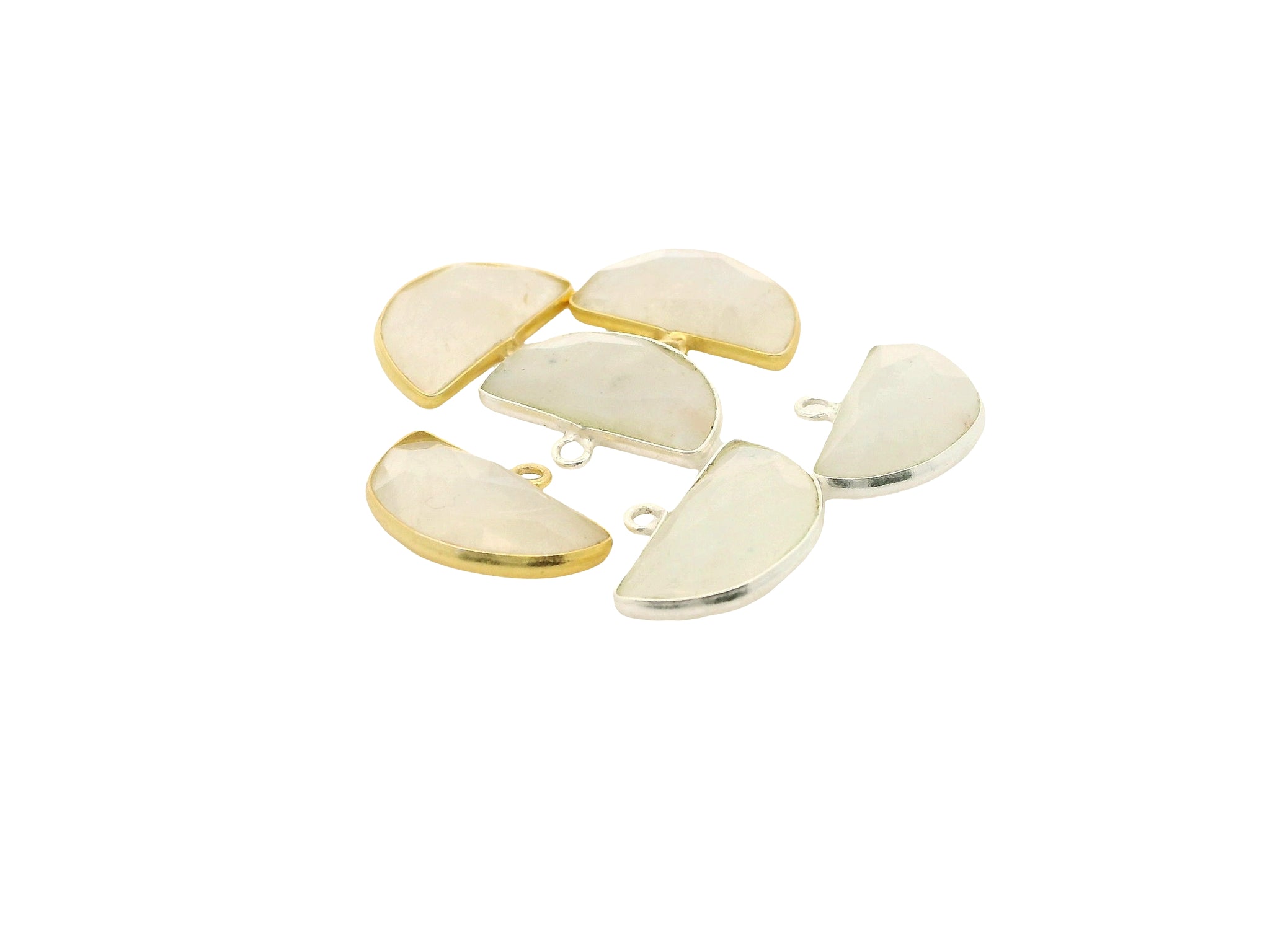 Natural Rainbow Moonstone Half Moon Shape Gemstone Bezel One Loop – Gold Plated Over Sterling Silver & 925 Silver – 1 Piece
