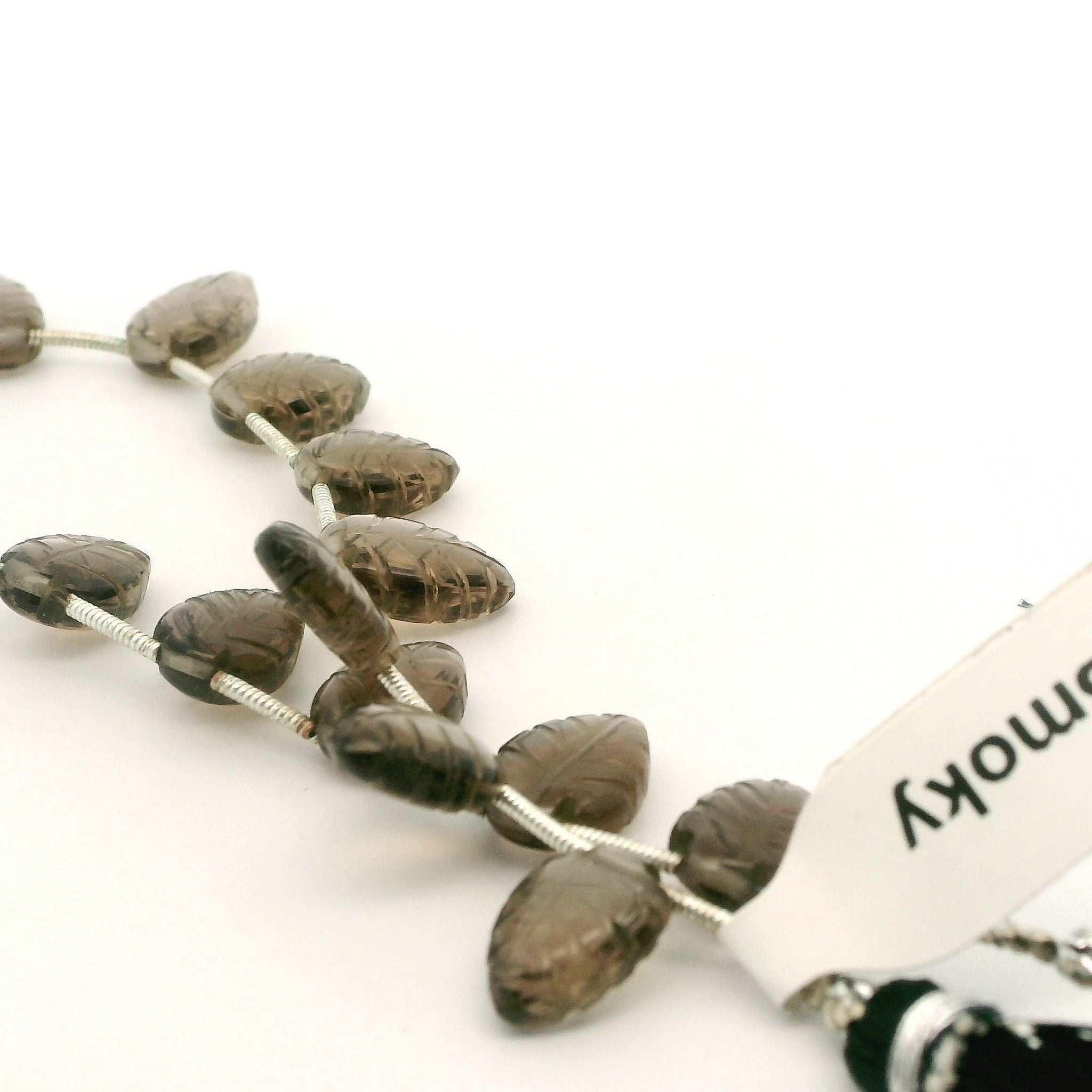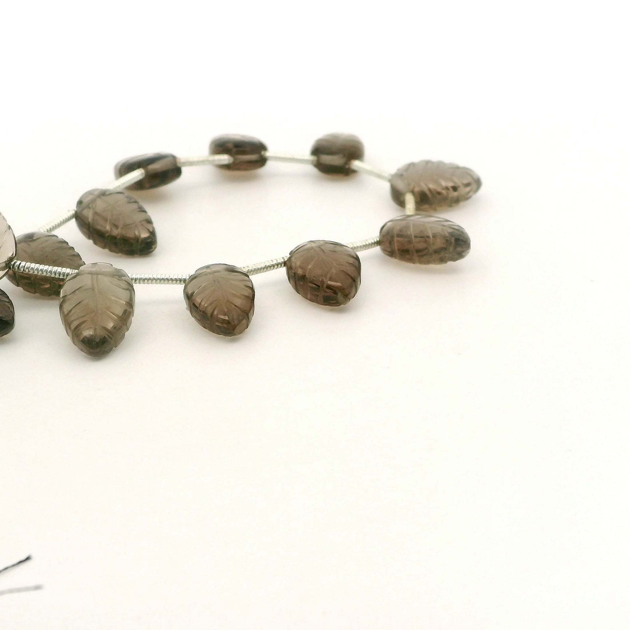 Add a natural earthy touch to your jewelry designs with these Natural Smokey Quartz Carved Leaf Gemstone Beads. Each strand includes 16 smooth, detailed leaf-shaped beads, offering beautiful clarity and a rich smoky tone. The carved leaf style makes them perfect for earrings, bracelets, necklaces, charms, and nature-inspired designs.